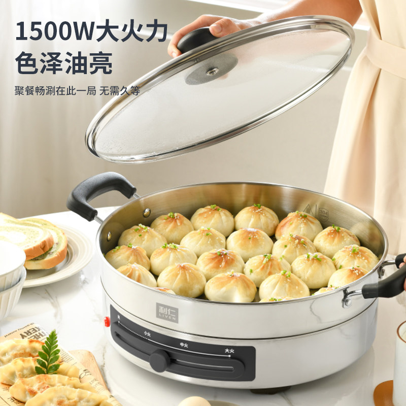 利仁电煎锅不锈钢电饼铛家用新款加深加大多功能烙饼锅官方旗舰店