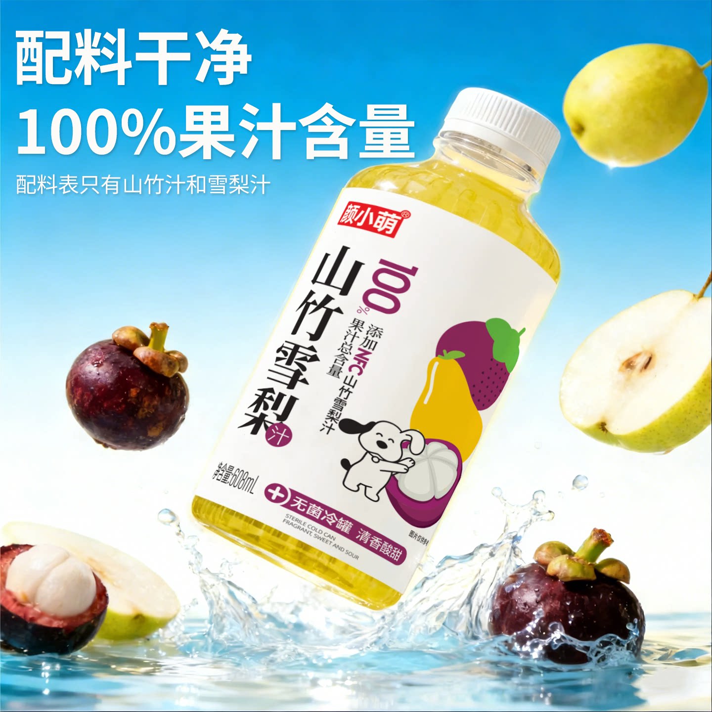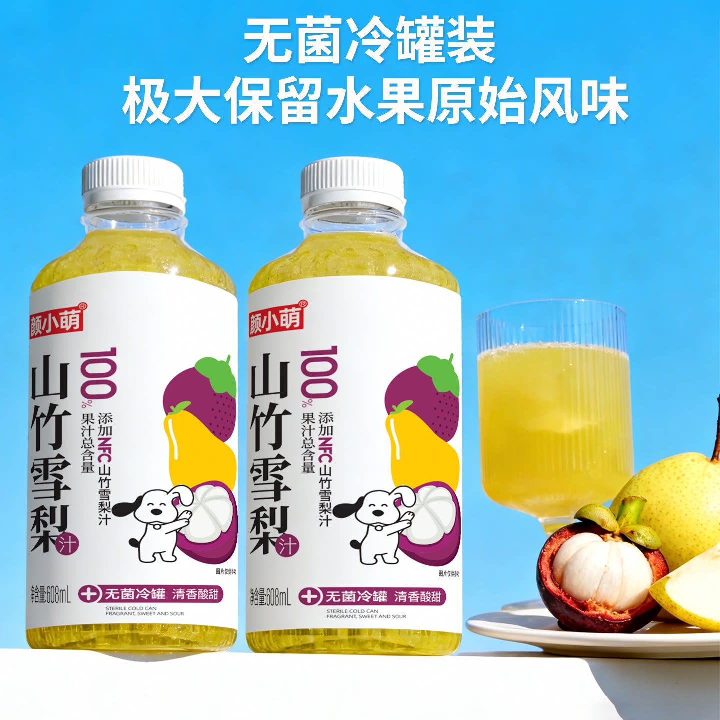颜小萌100%山竹雪梨汁608ml饮料6瓶秋冬清热温润高颜值饮料饮品箱