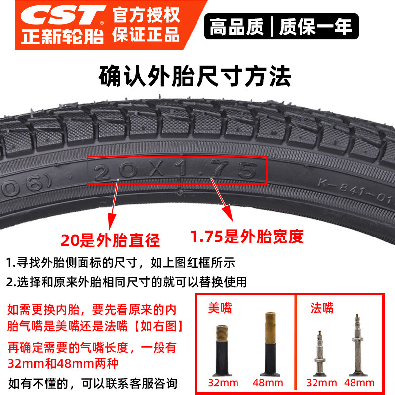 CST正新轮胎12-14-16-18-20-22-24-26寸1.75单车自行车内外胎3/8