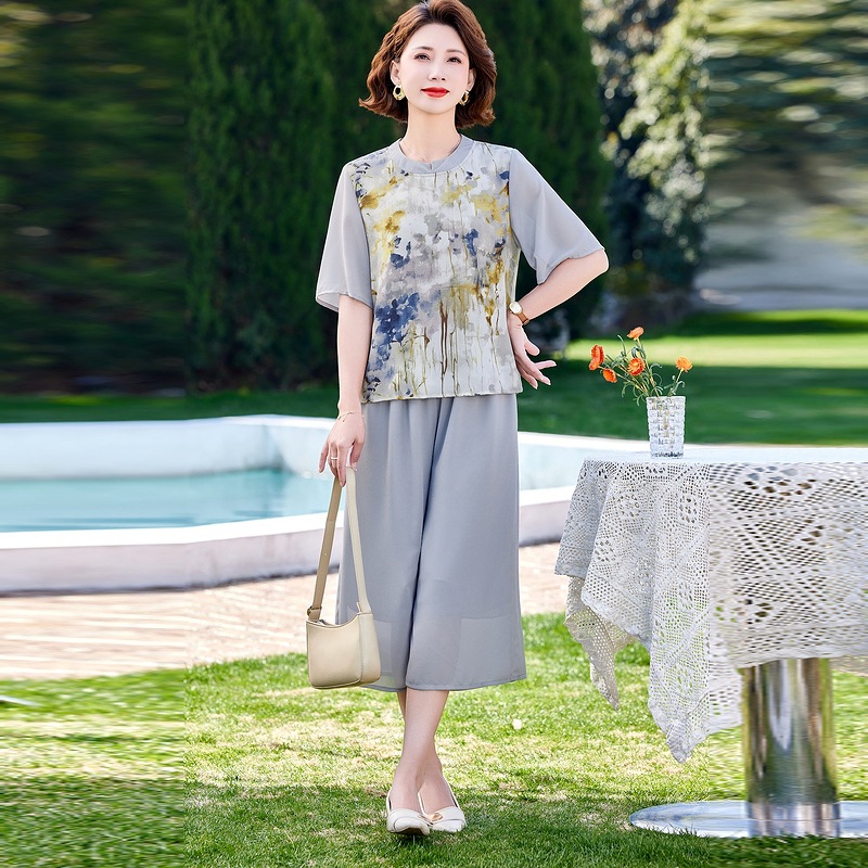 洋气中老年女装休闲两件套中年妈妈夏季国风t恤上衣套装2025新款