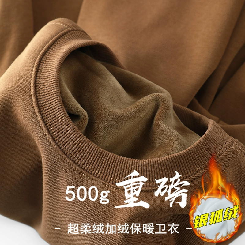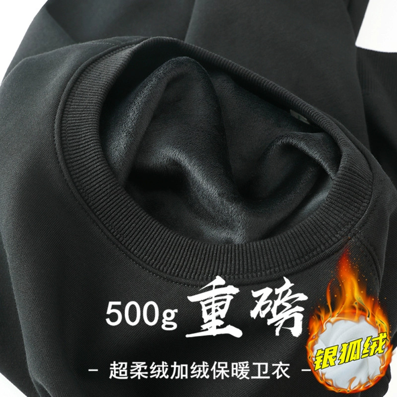 500g重磅加绒加厚圆领卫衣男女情侣宽松内搭上衣秋冬季保暖套头衫