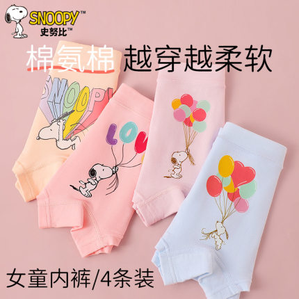 史努比儿童内裤女童内裤纯棉平角裤卡通女孩小中大童女孩四角短裤