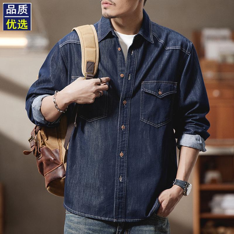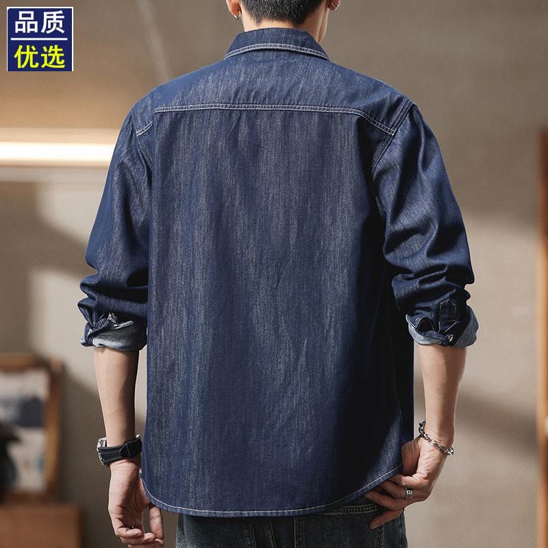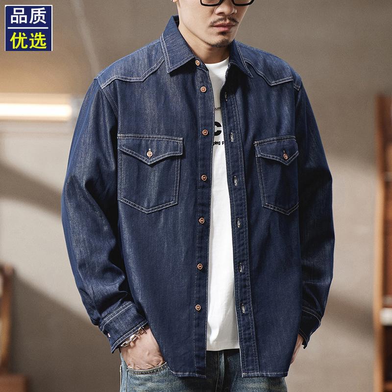 美式复古原色丹宁男士牛仔衬衫春季2025新款宽松大码工装衬衣外套