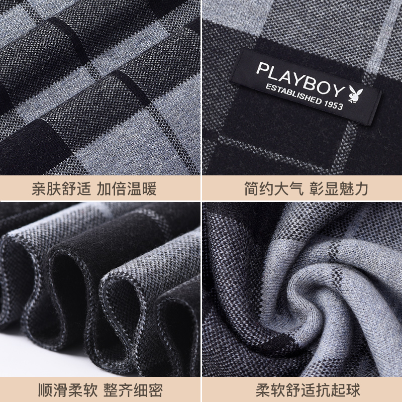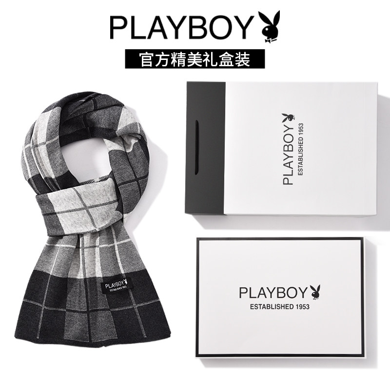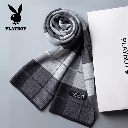 花花公子羊毛围巾男士冬季2025新款高档加厚保暖男生围脖男友礼物