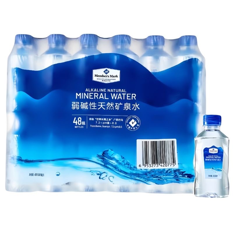山姆代购MEMBER"S MARK 弱碱性天然矿泉水300ml/瓶 整箱48瓶