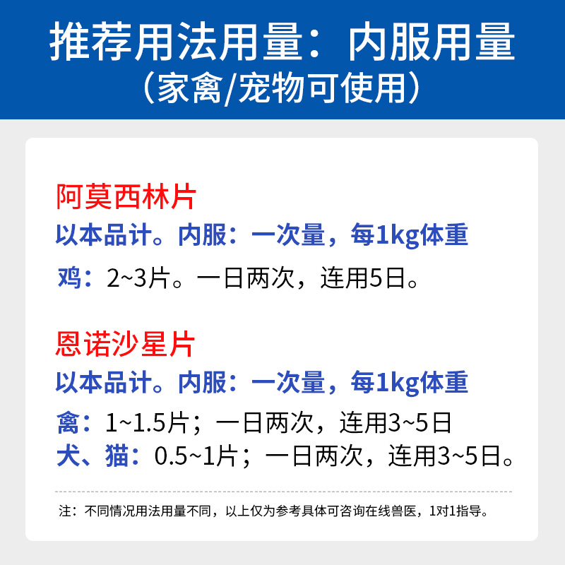 恩诺沙星兽用鸡药片养鸡专用药鸡鸭鹅咳嗽拉稀阿莫西林鸡用消炎药