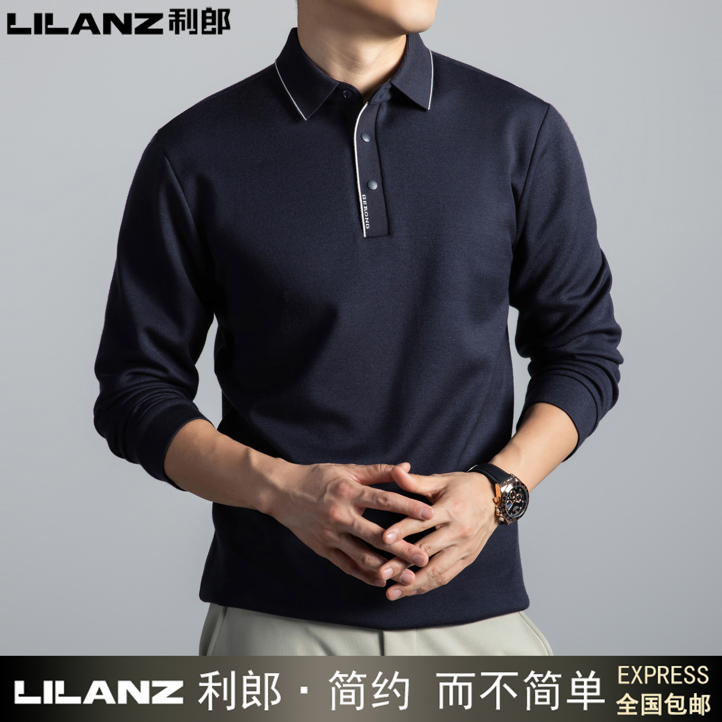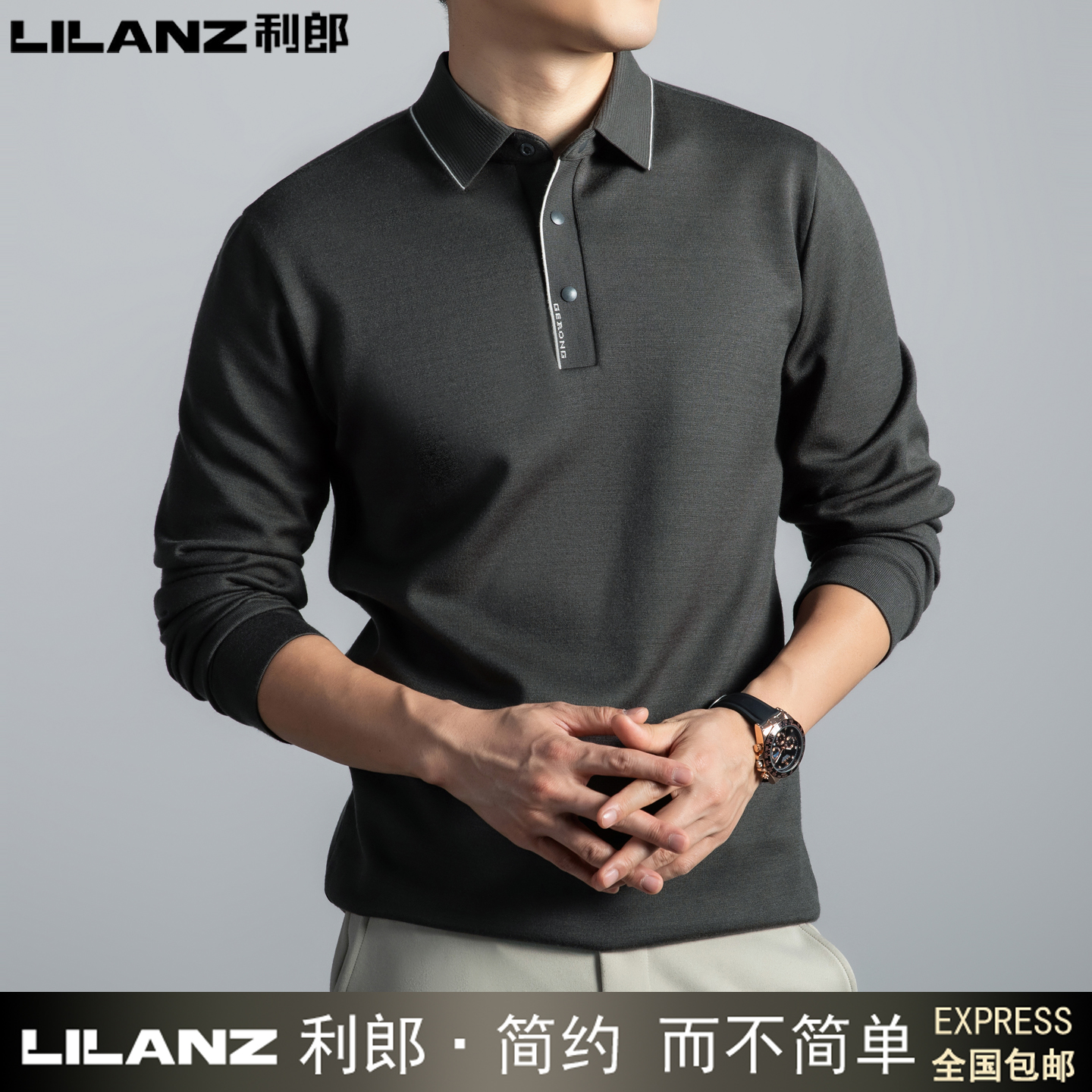 利郎男装毛衣翻领纯色休闲羊毛衫中年男士长袖打底针织polo衫t恤