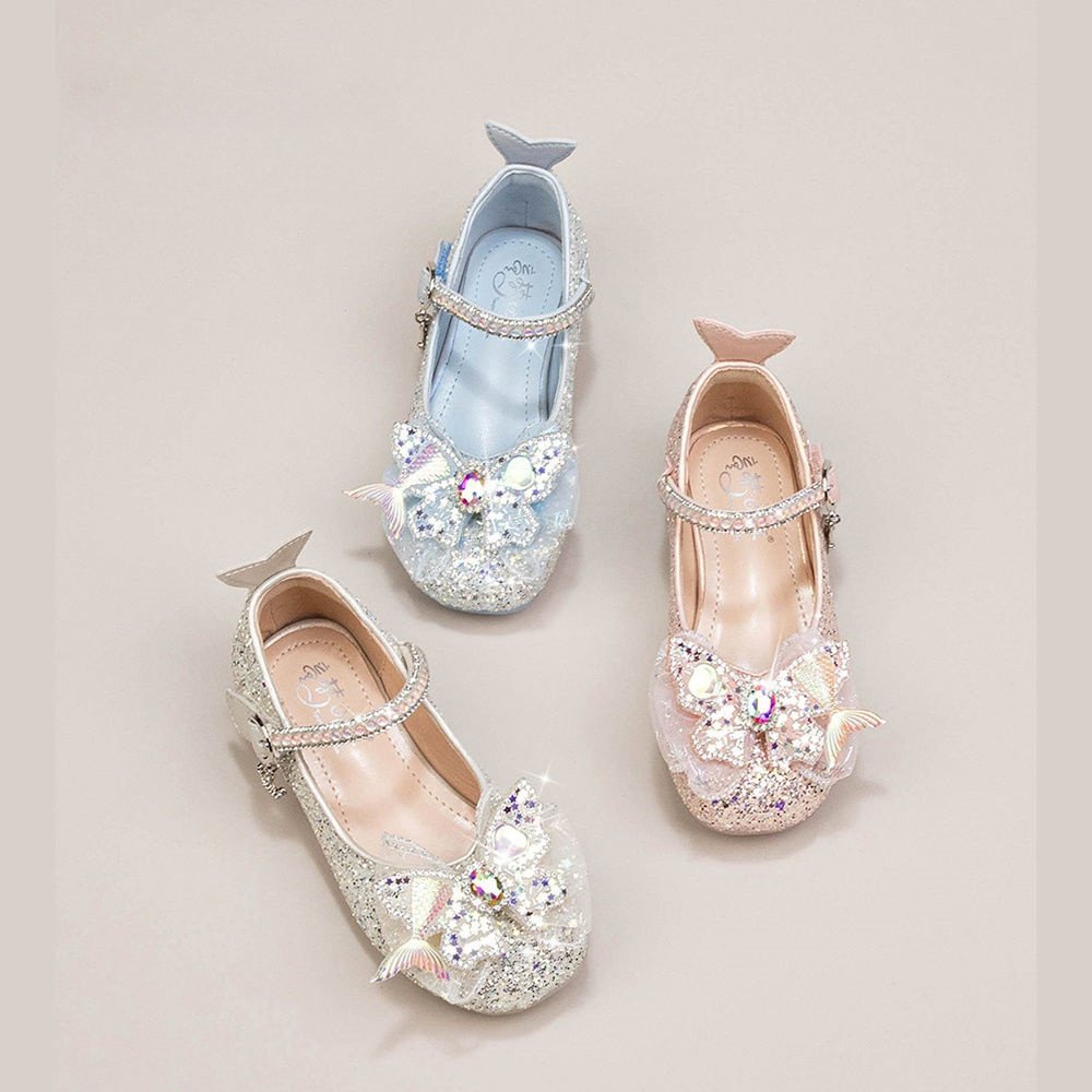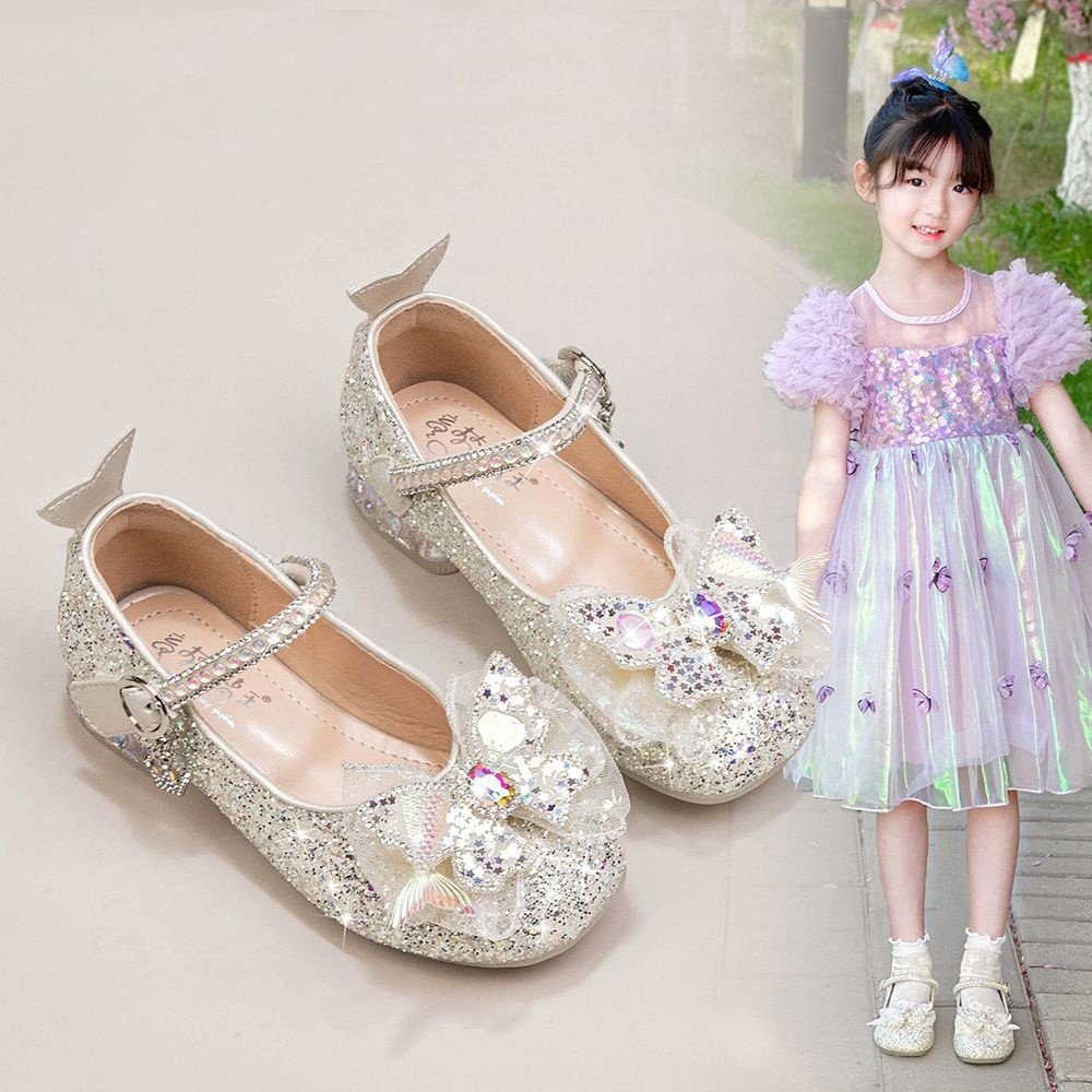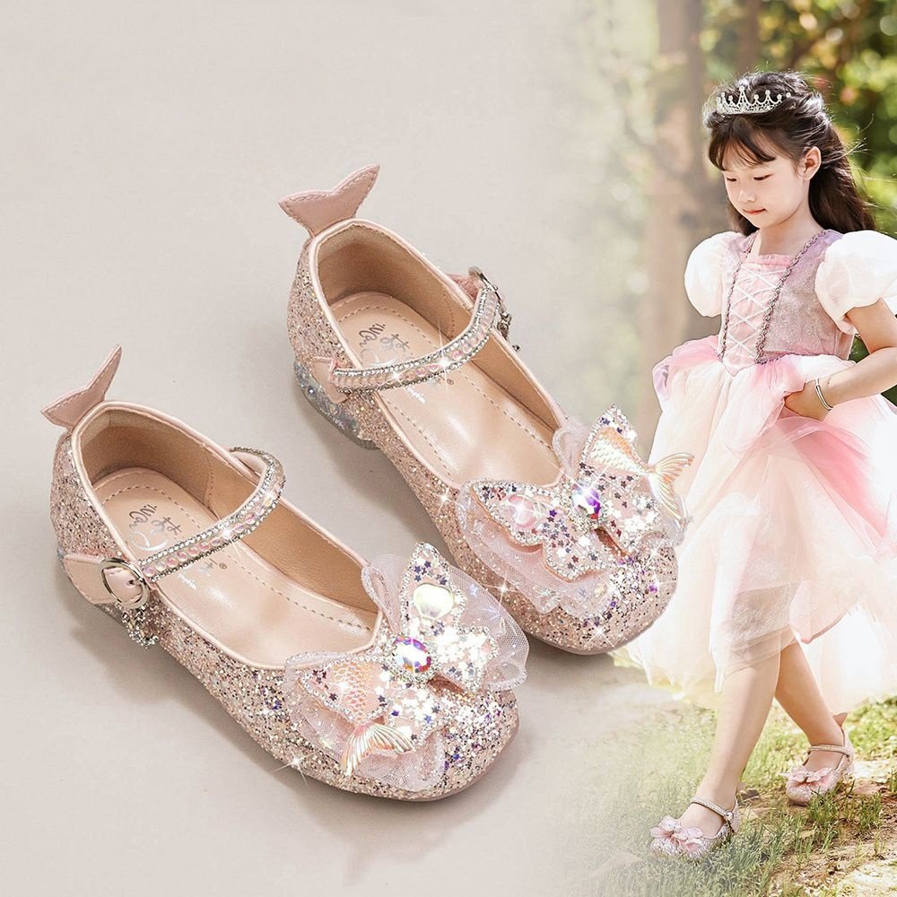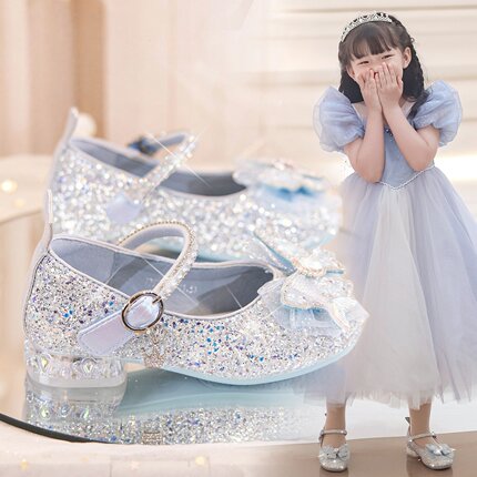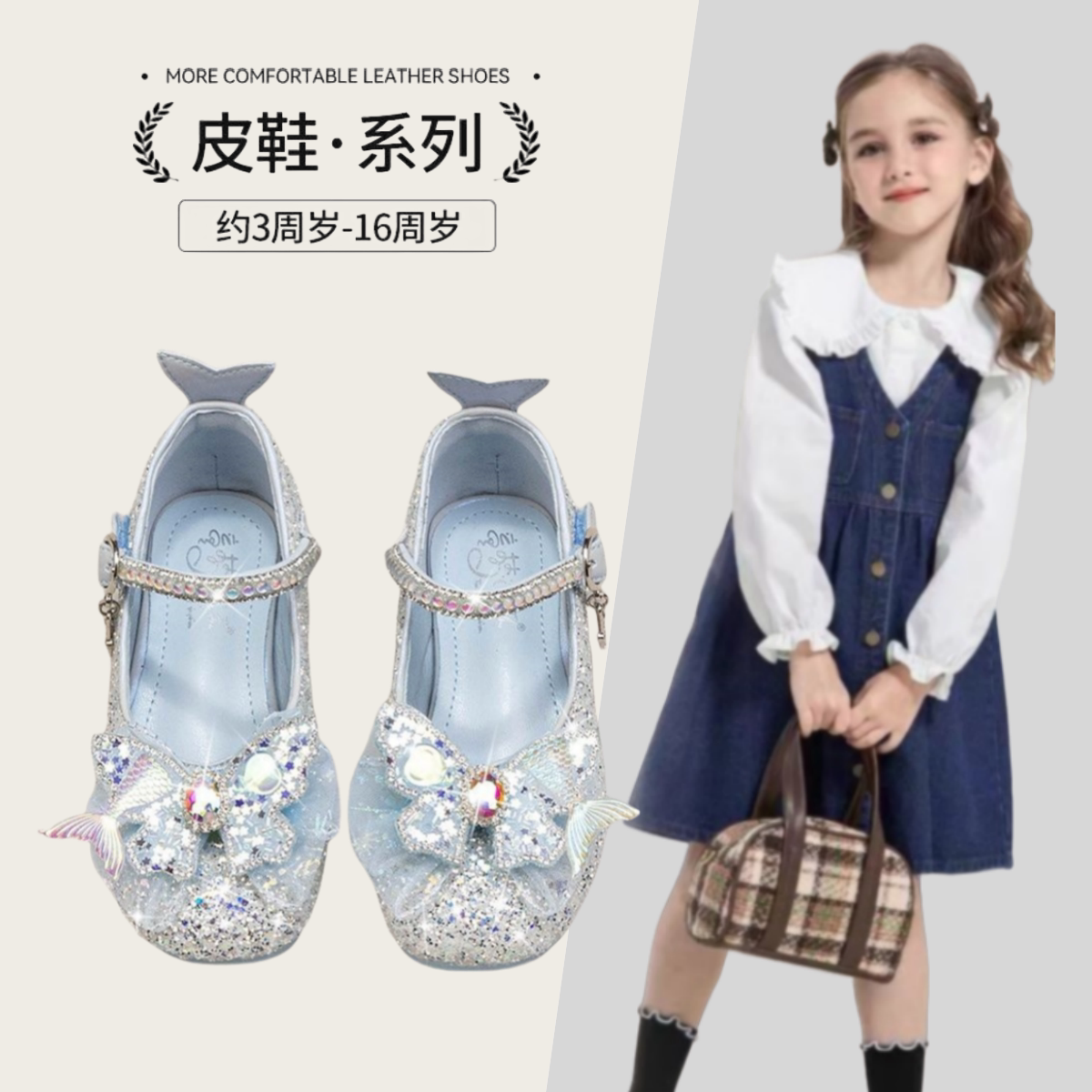 女童公主鞋2026春秋新款水晶亮钻高跟鞋软底爱莎小女孩女宝礼服鞋