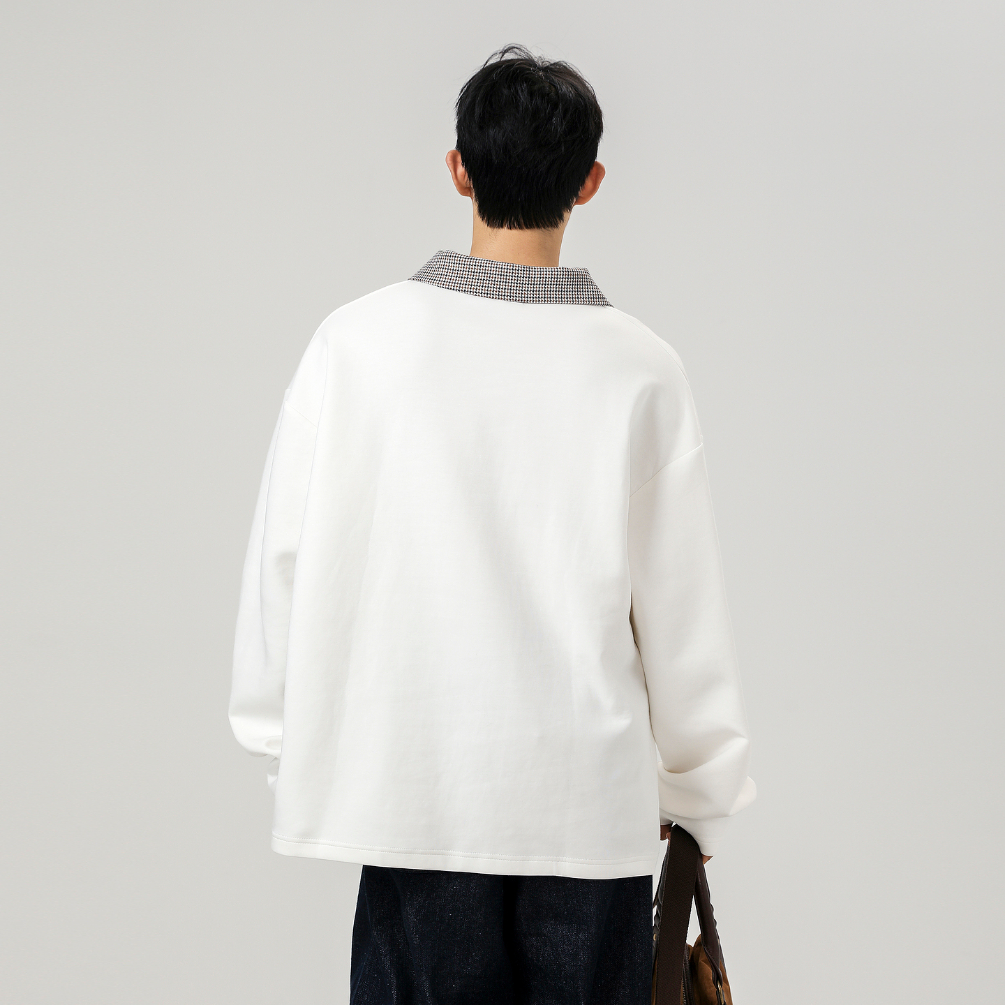 悟空有货复古千鸟格POLO领卫衣男女秋季潮牌情侣宽松休闲百搭上衣