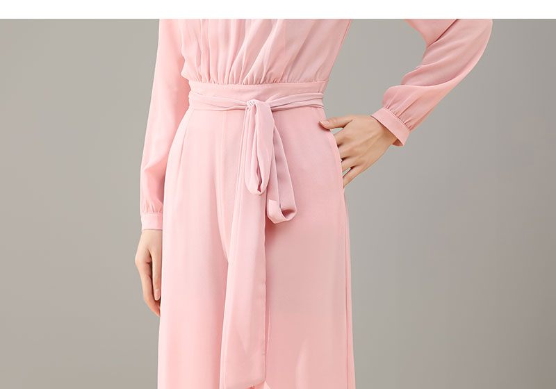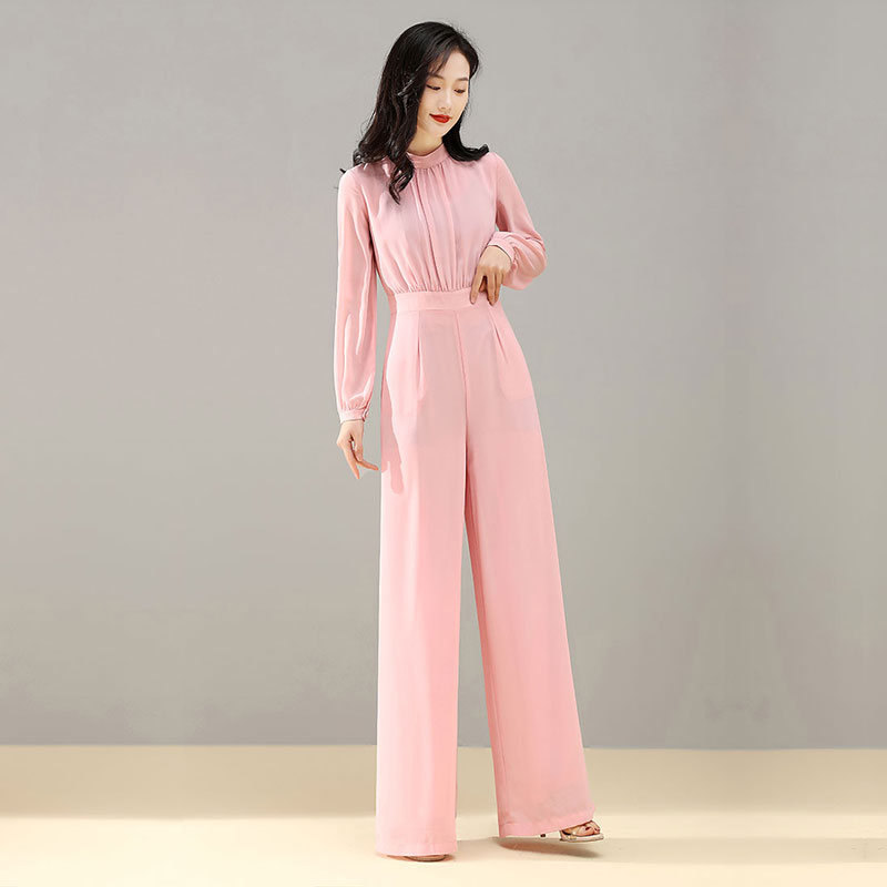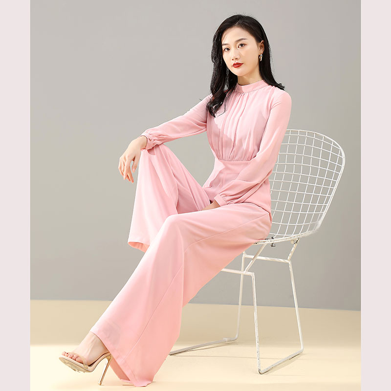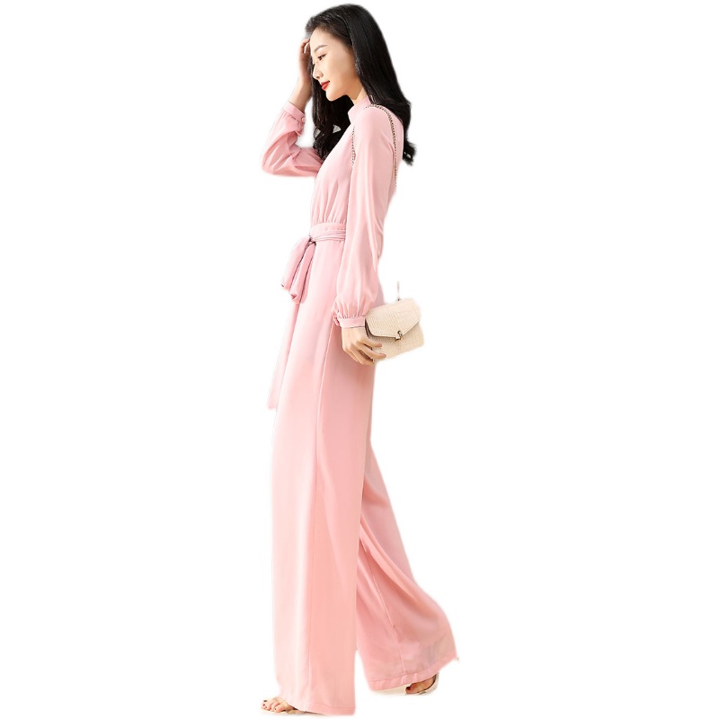2024春夏新款雪纺气质显瘦连体长裤高腰阔腿裤连体衣女装长袖