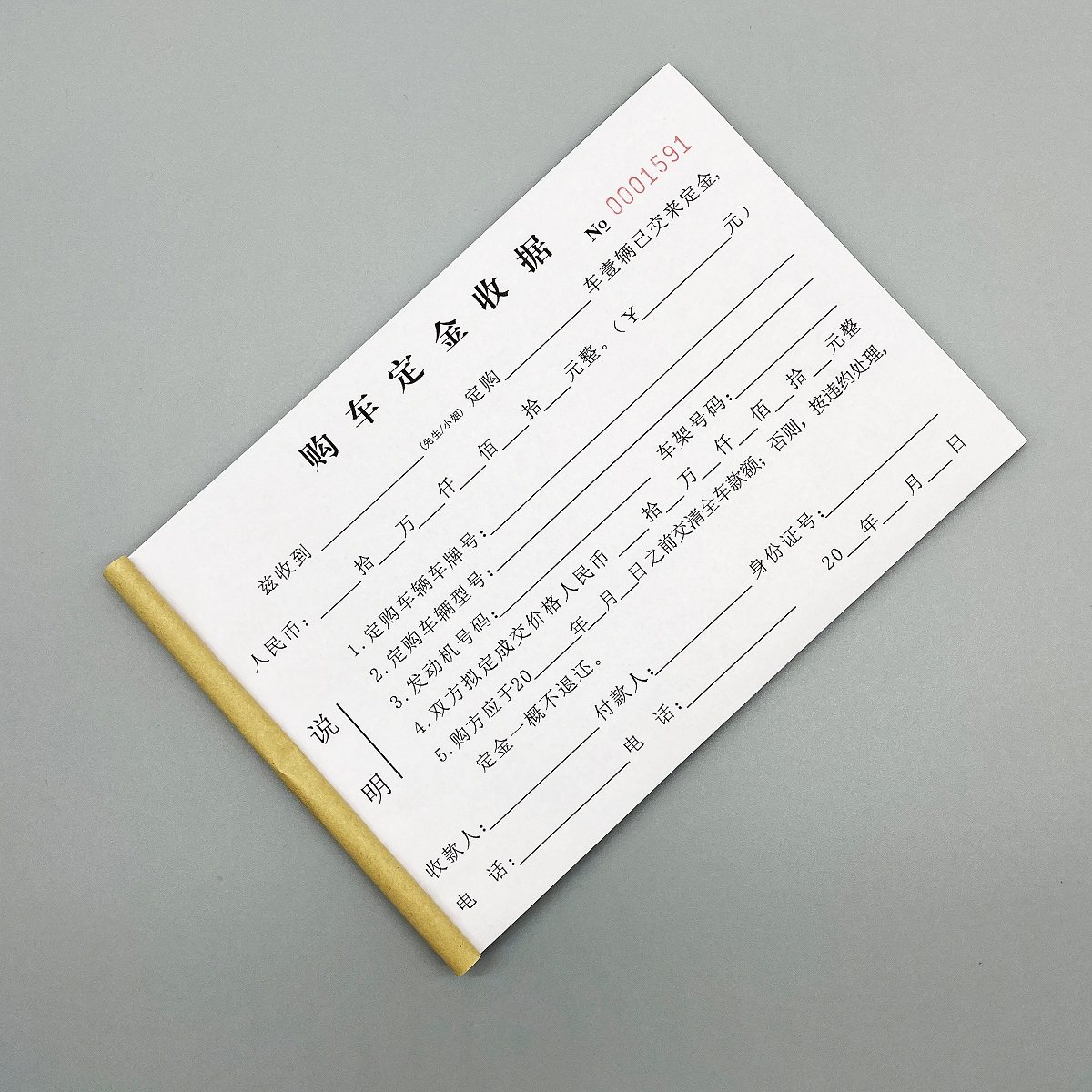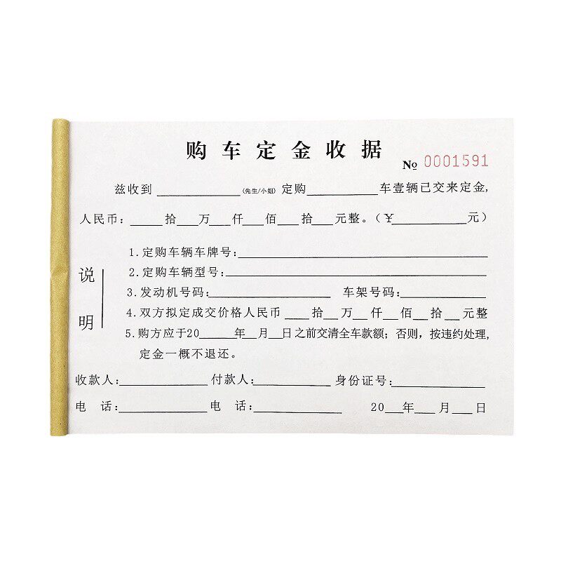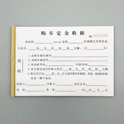 汽贸城车辆购车定金收据定制二联二手汽车买卖协议买车订金押金单