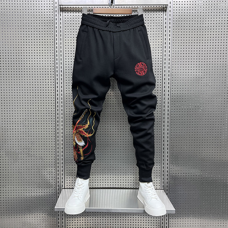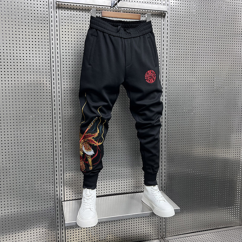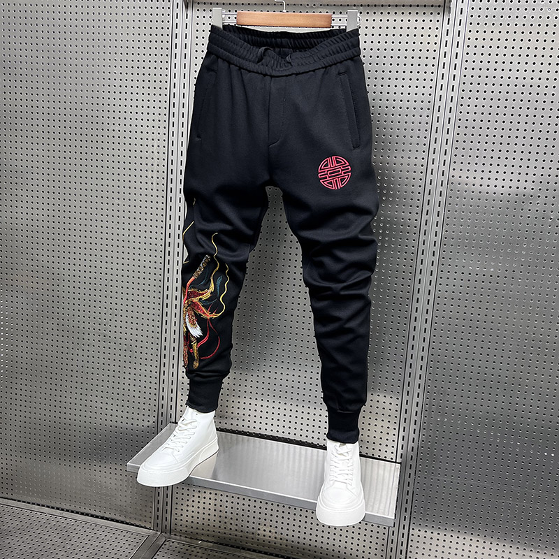 男春季新款时尚刺绣小脚运动裤子