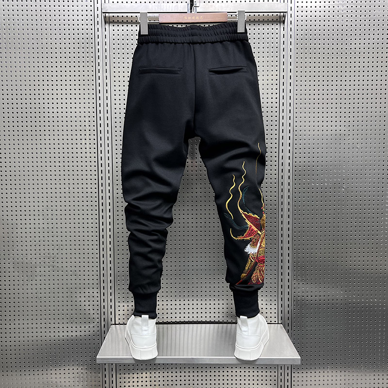 休闲卫裤男春季中国风刺绣小脚运动裤子修身百搭悟空束脚哈伦裤