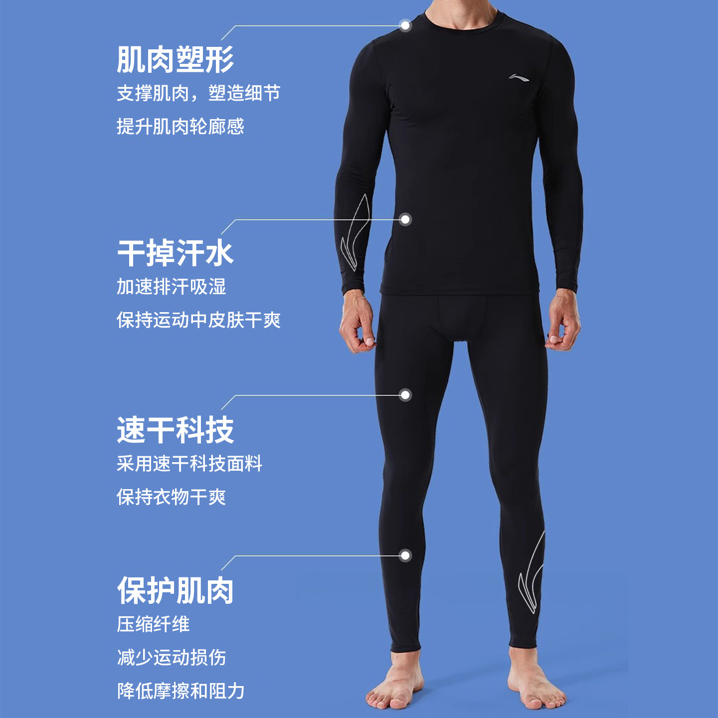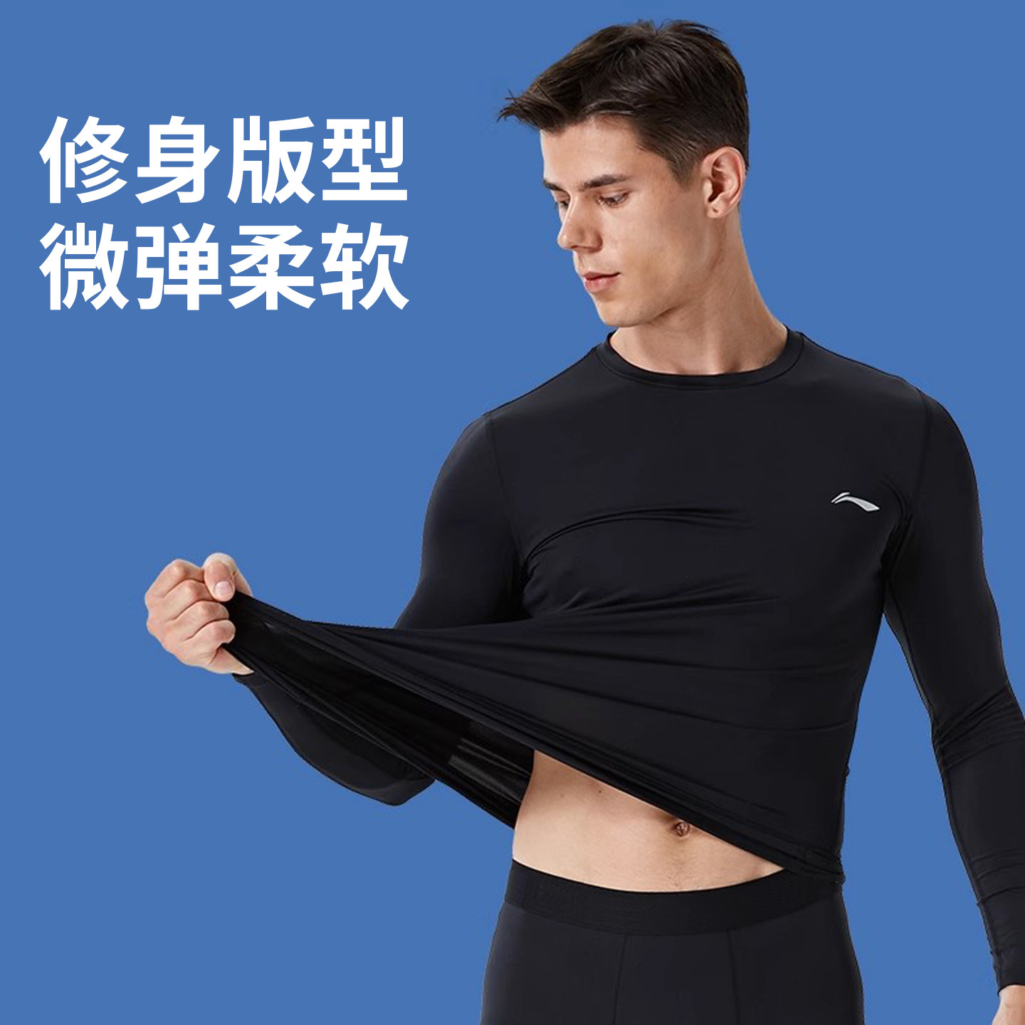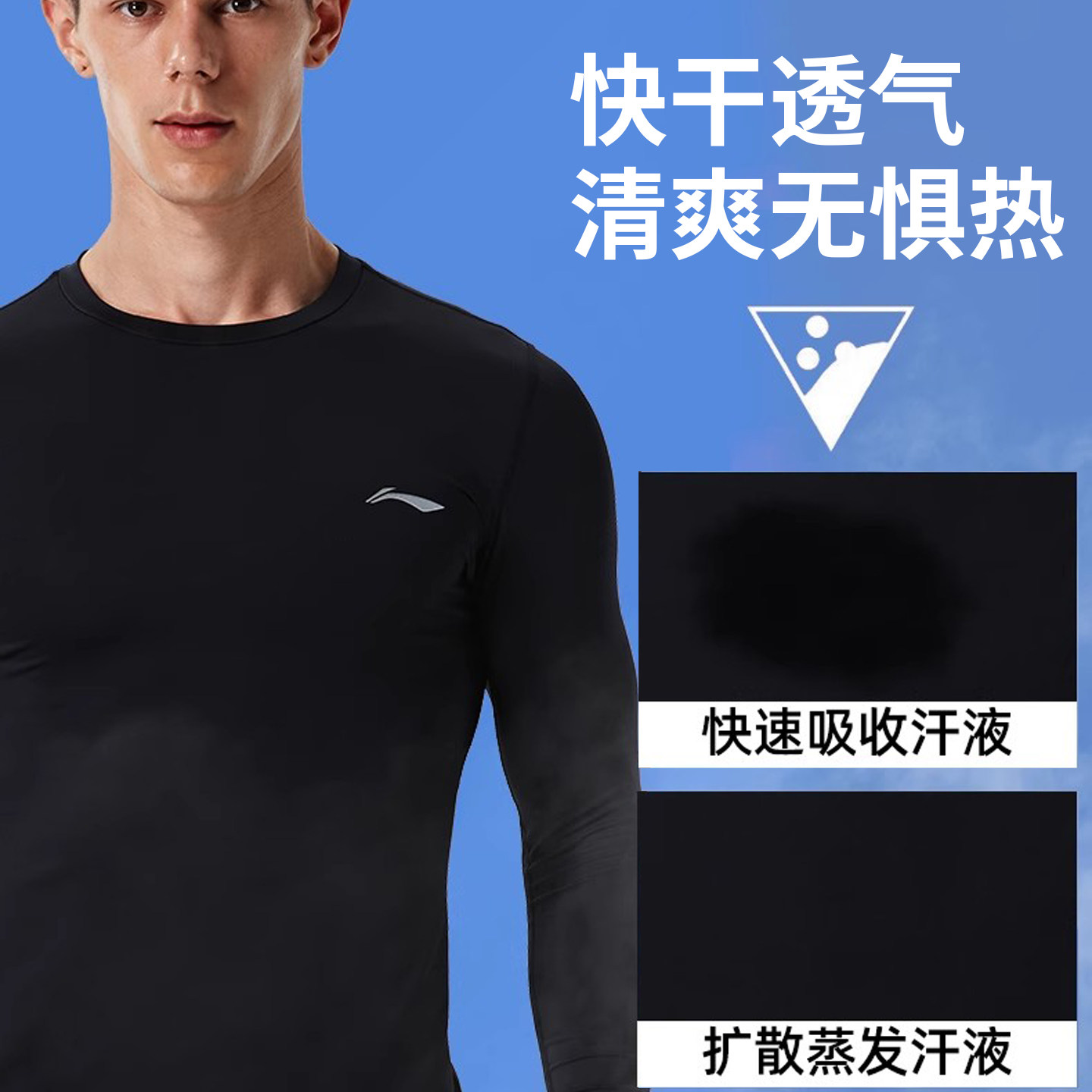 李宁速干衣男士紧身衣运动套装跑步篮球健身滑雪保暖内衣长袖上衣