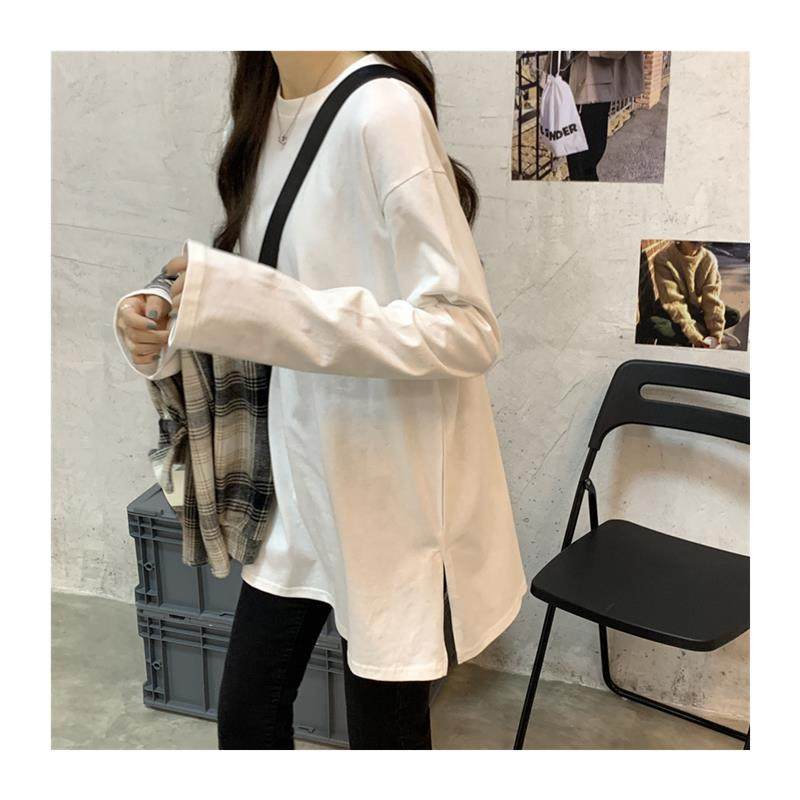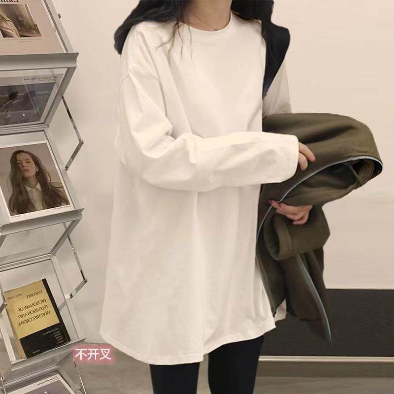 至简纯棉白色打底衫女中长款长袖t恤~内搭遮屁股2025秋季上衣