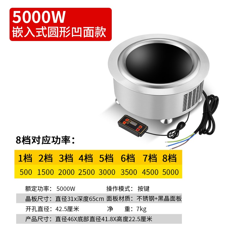圆形地锅鸡火锅铁锅炖凹面曲面商用大功率3000W5嵌入电磁炉电陶炉