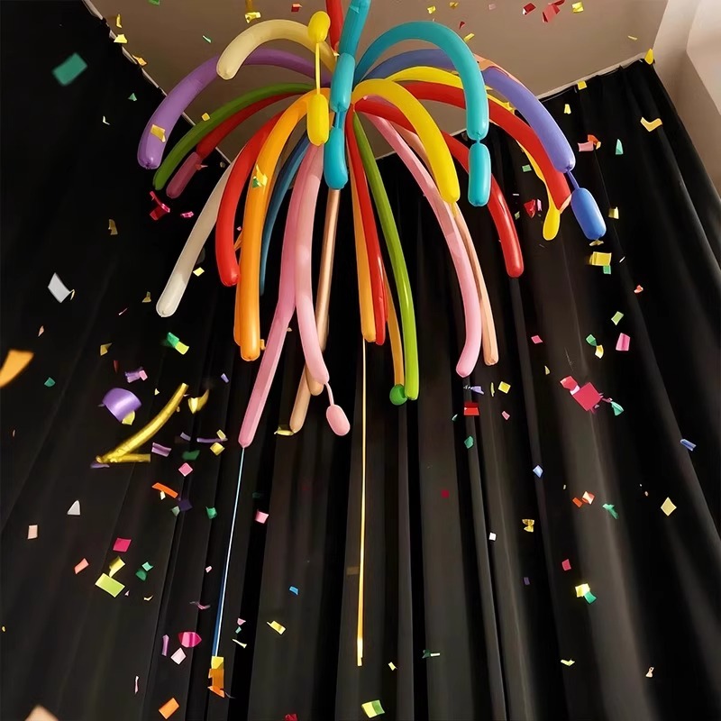 多巴胺长条烟花气球生日场景氛围布置宝宝周岁饭店包间仪式感装饰