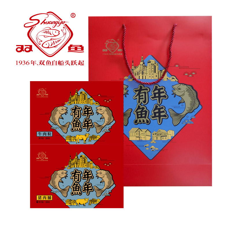 双鱼年年有鱼礼盒混合 年货送礼靖江特产金奖猪肉铺牛肉粒猪肉脯