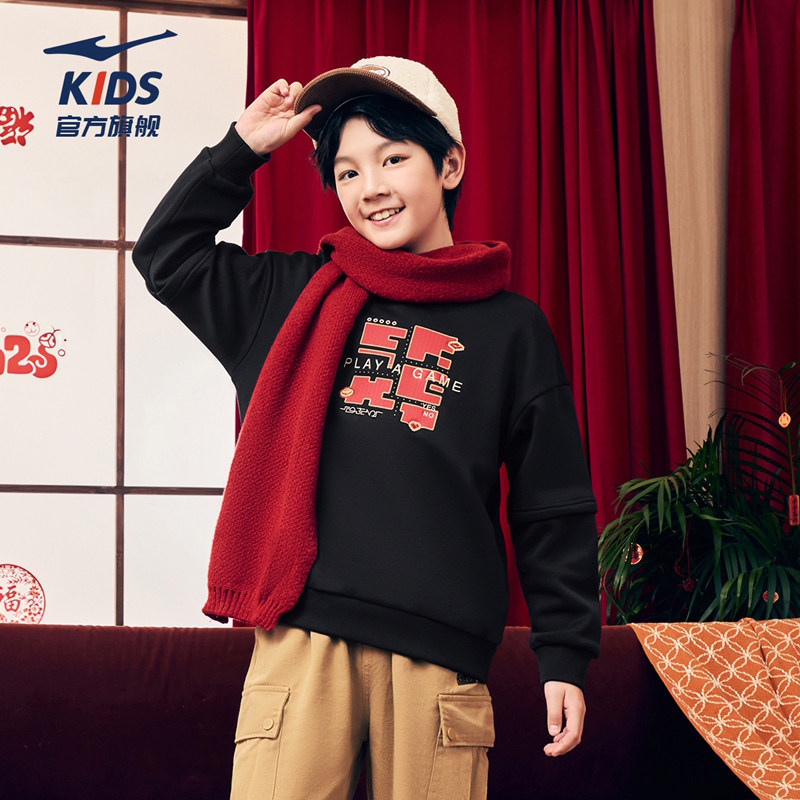 鸿星尔克男童女童加绒卫衣拜年服