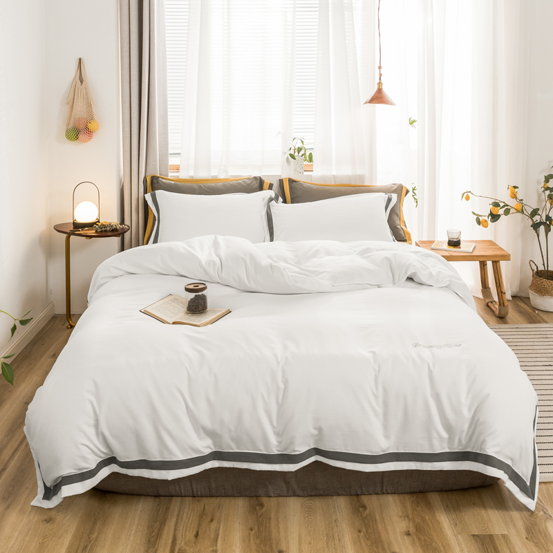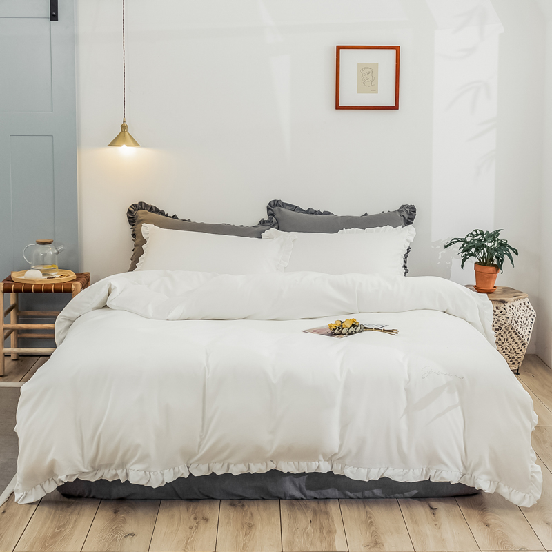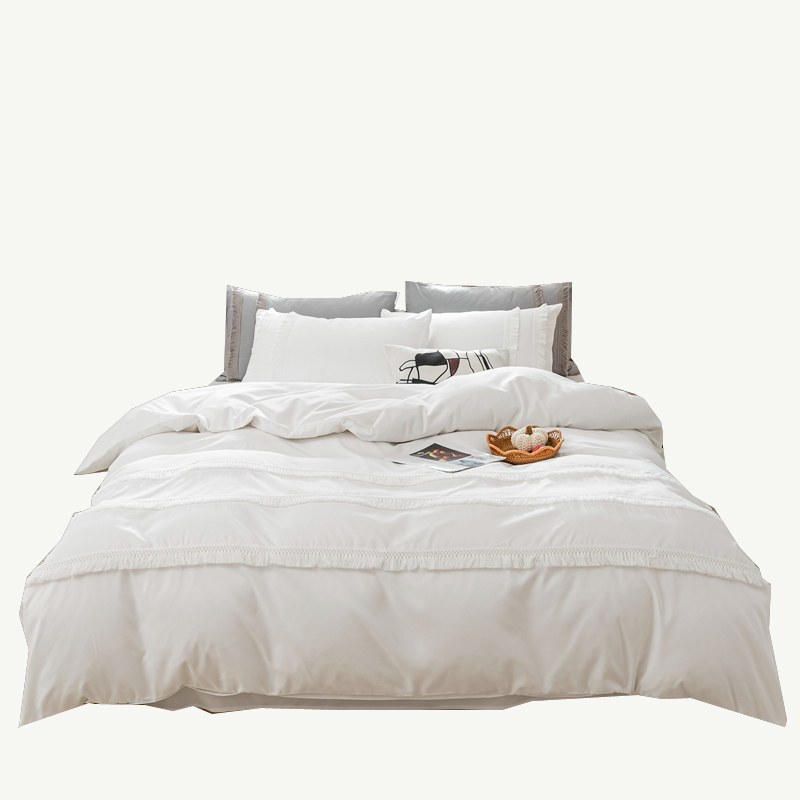 春夏流苏纯色g四件套白色简约荷叶边双被套床笠1.8素色白民宿宾馆