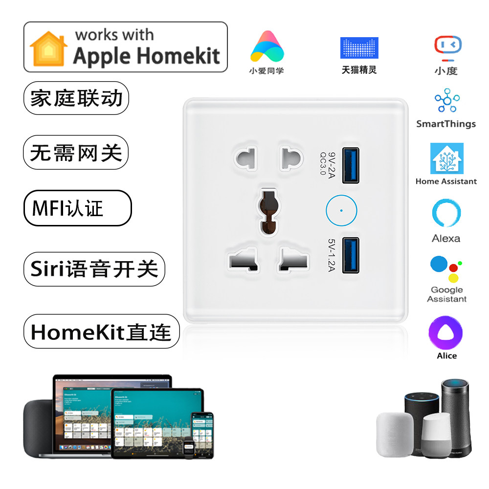 HomeKit墙插智能usb插座86型暗装WiFi远程小爱天猫谷歌音箱