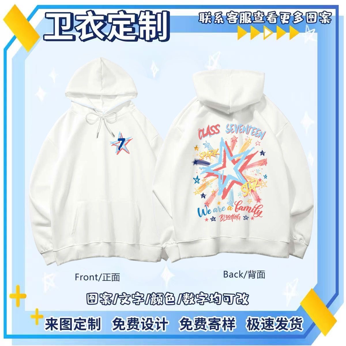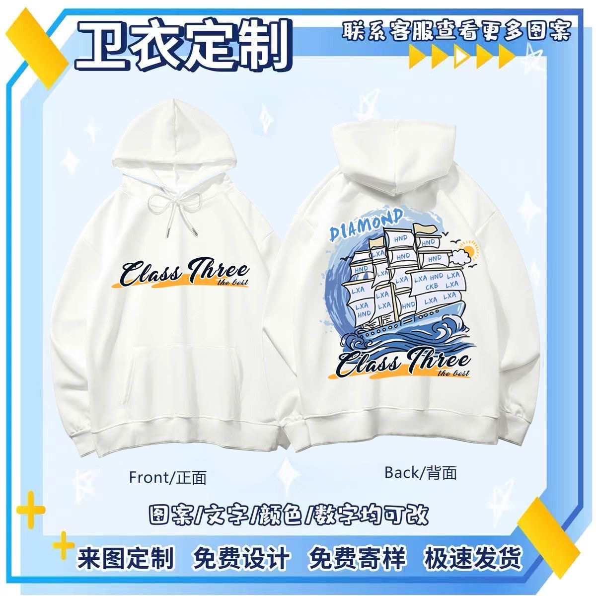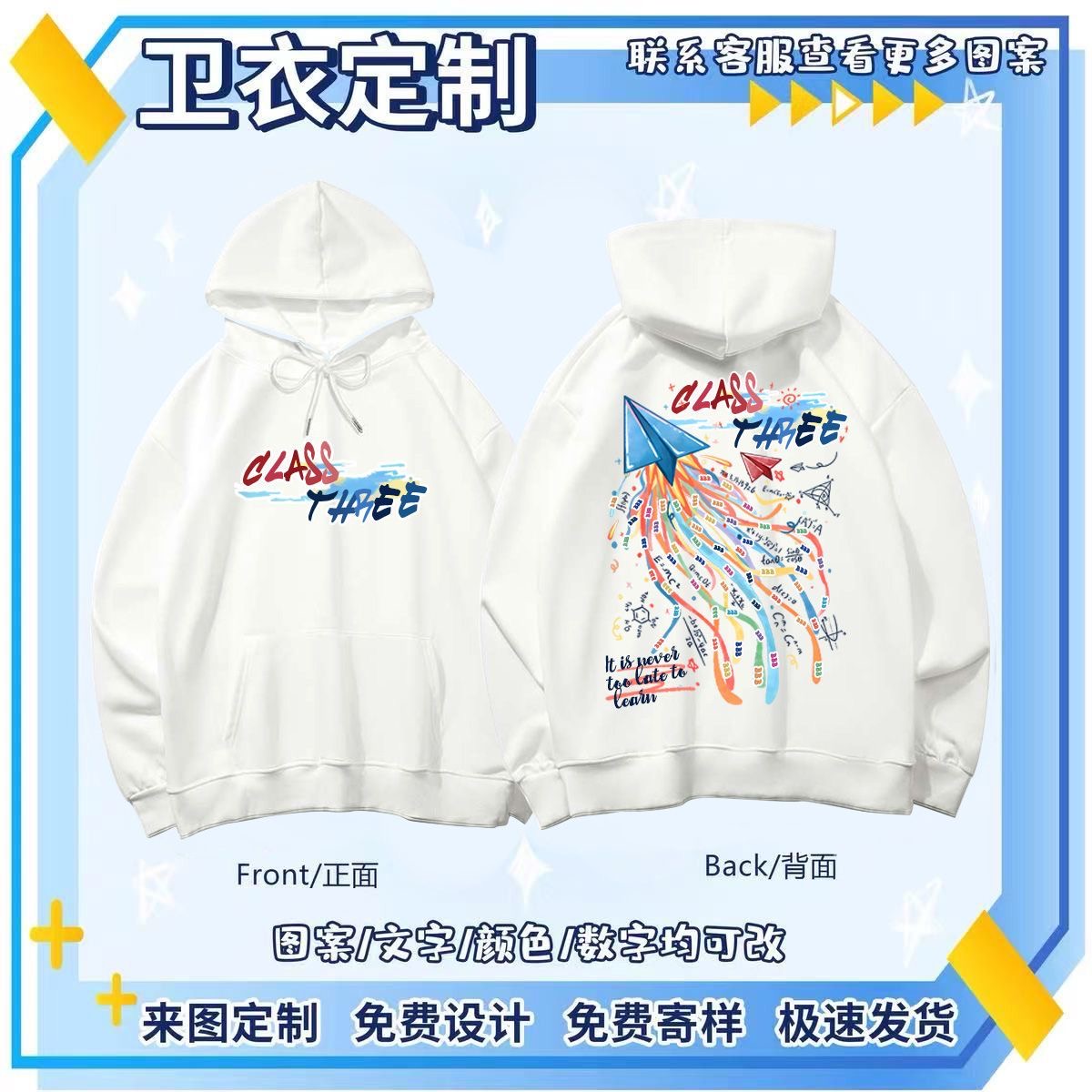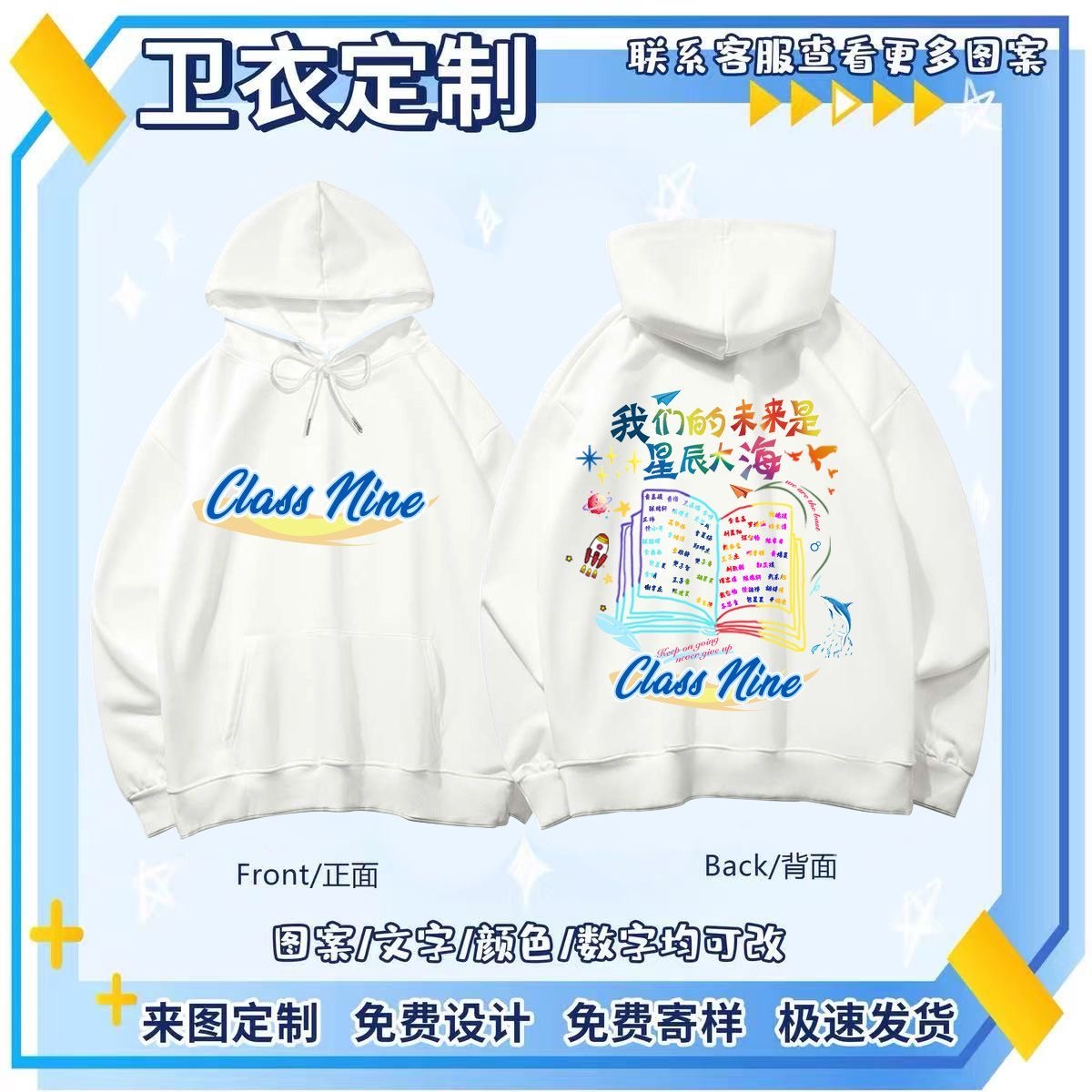 班服卫衣定制小学生初高中运动会diy连帽长袖外套工作服印logo