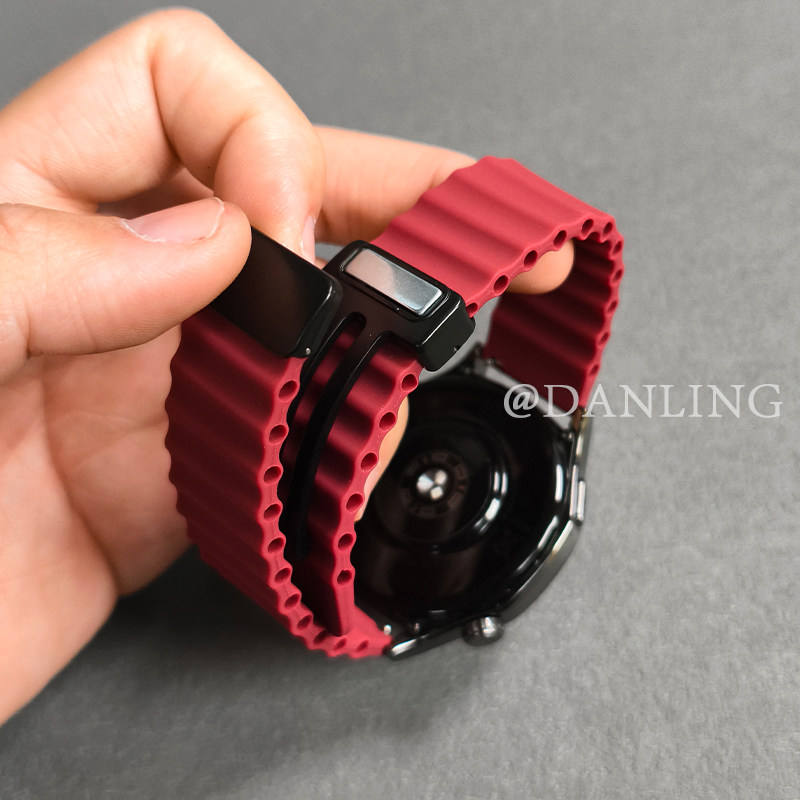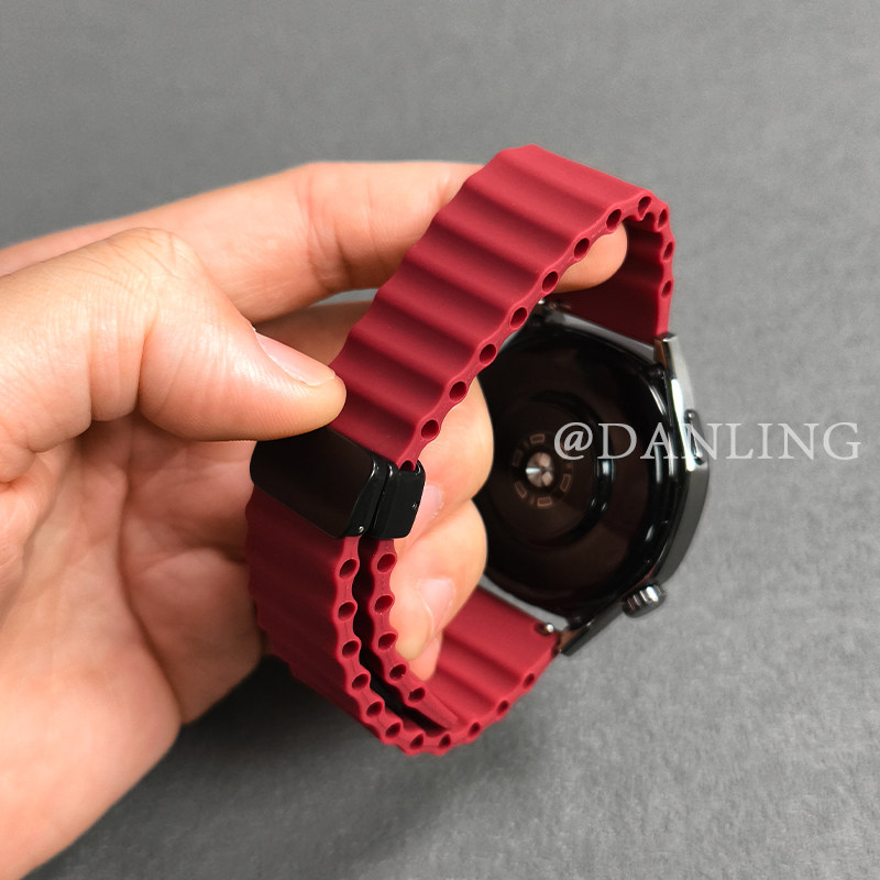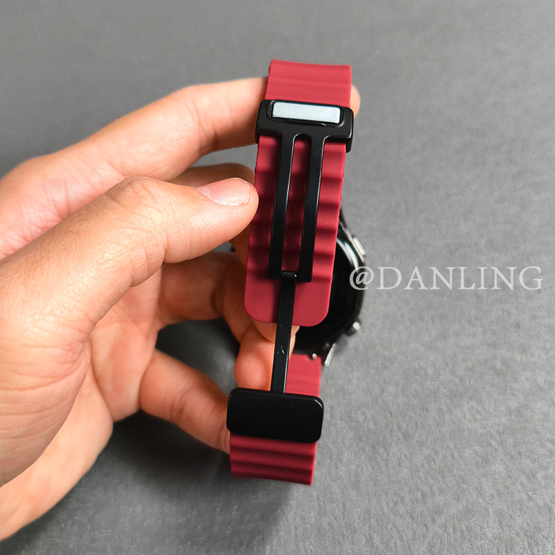 手表带硅胶男款磁吸扣运动透气酒红色表链代用天梭王DW浪琴卡西欧