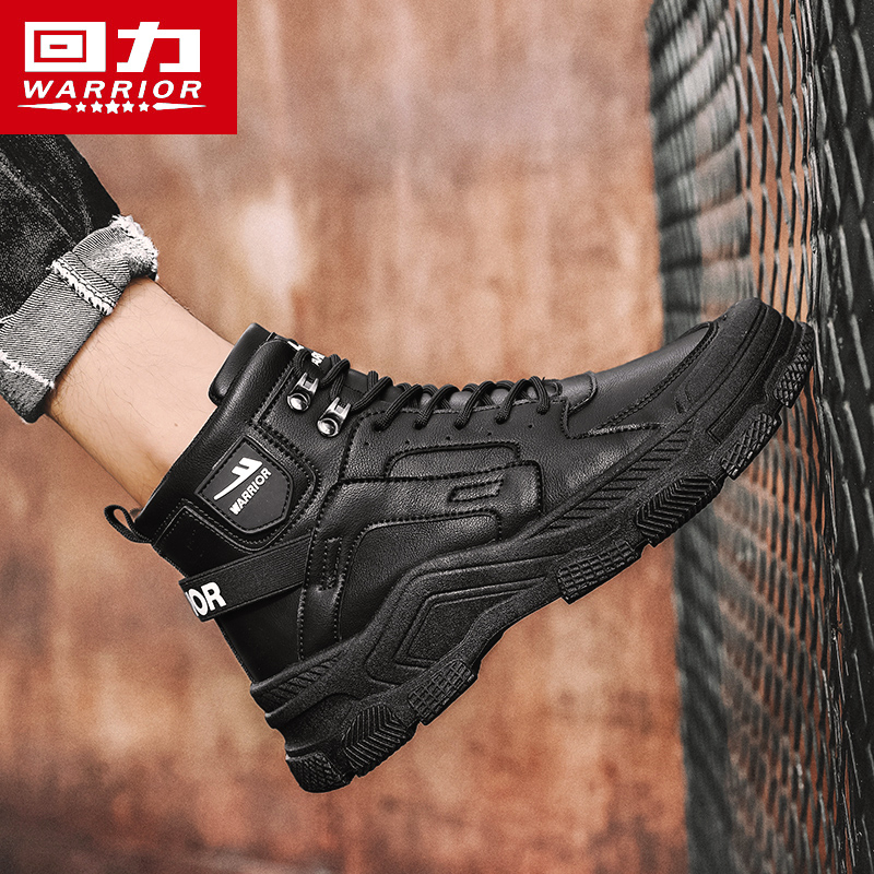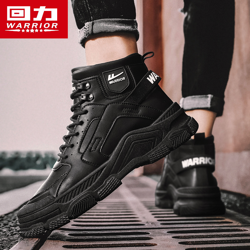 回力高帮男鞋透气英伦黑色男士休闲皮鞋防水防滑登山马丁靴子潮鞋