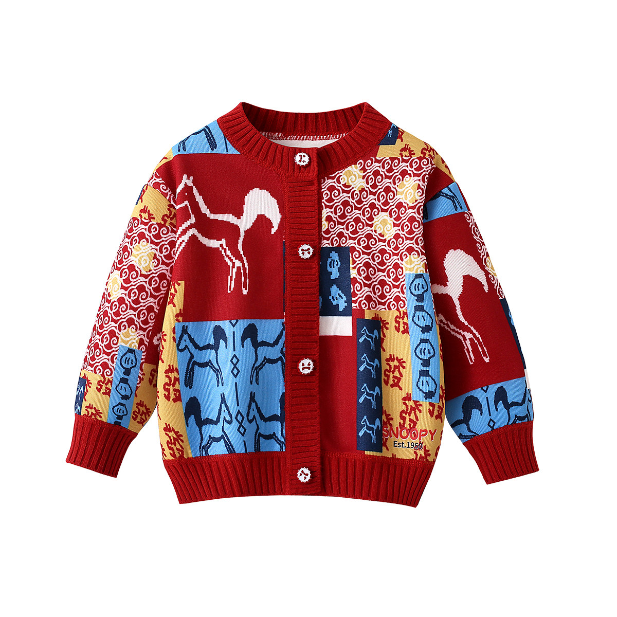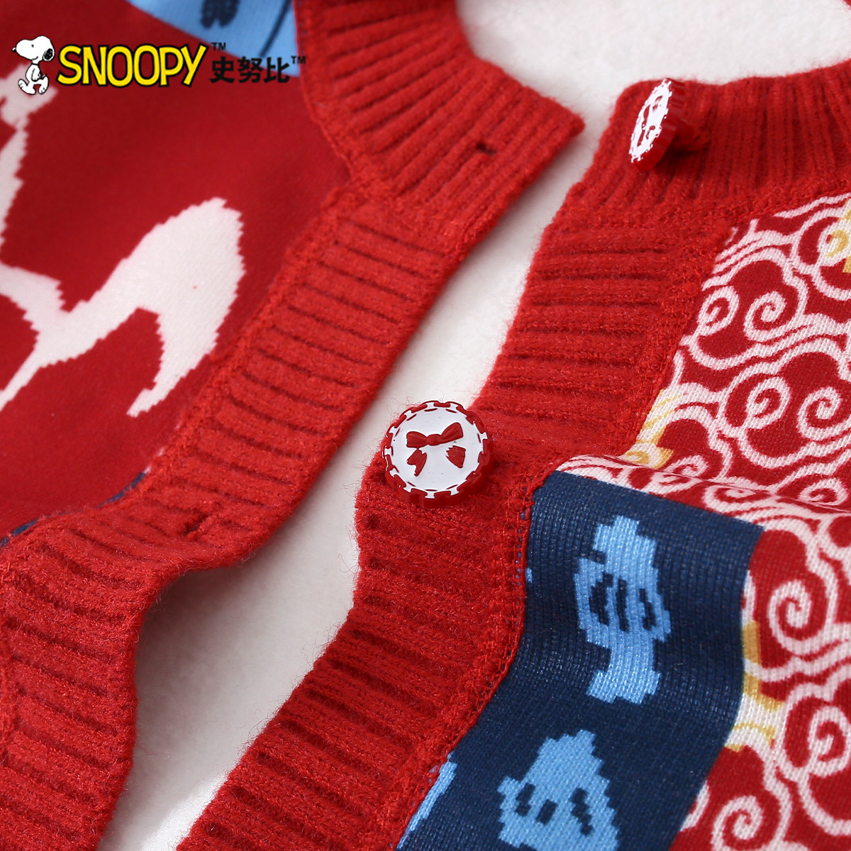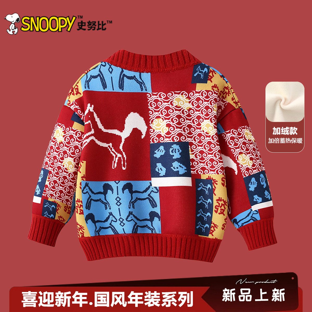 史努比女童过年毛衣冬季2026马年衣服儿童国风拜年服男童新年开衫