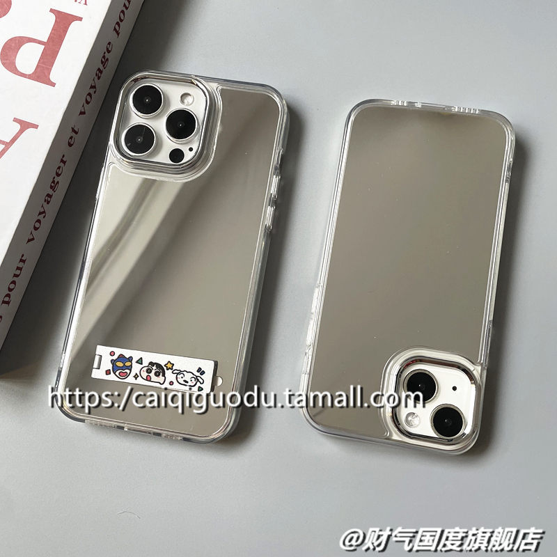 适用苹果15手机壳镜面带手绳小新支架14银色高级感13promax卡通保护套12超薄iPhone15plus防摔11个性创意女潮