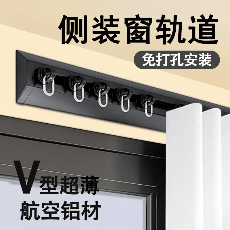 侧装窗帘轨道超薄隐形免打孔V型滑轨窗帘杆铝S合金极薄极窄顶装
