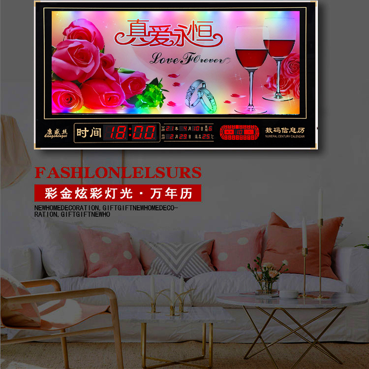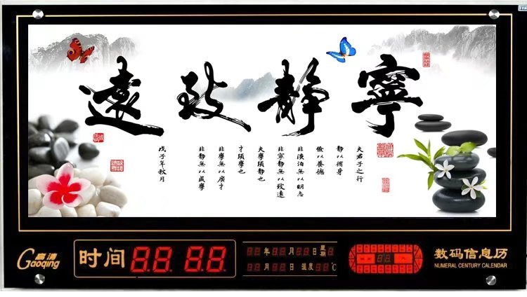 led万年历数码电子钟表客厅大风景山水画日历钟挂钟壁挂墙上礼品