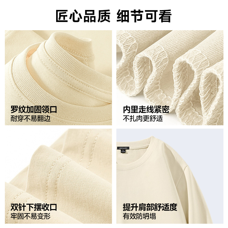 JR真维斯男装2025春季新款潮流印花宽松纯棉长袖t恤米色男生衣服