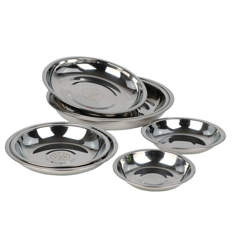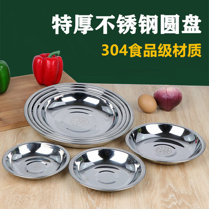 特厚304不锈钢圆盘子家用菜盘烧烤盘食堂菜碟加深盘幼儿园水果盘