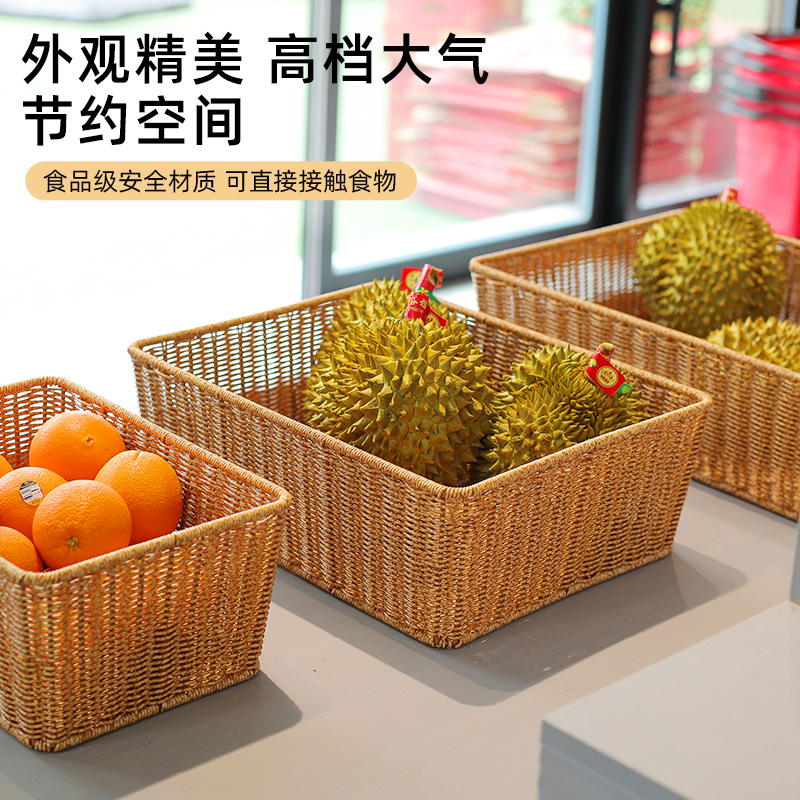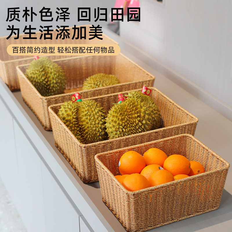 Kens仿藤编零食水果框客厅家用果篮糖果干果收纳篮超市面包陈列筐