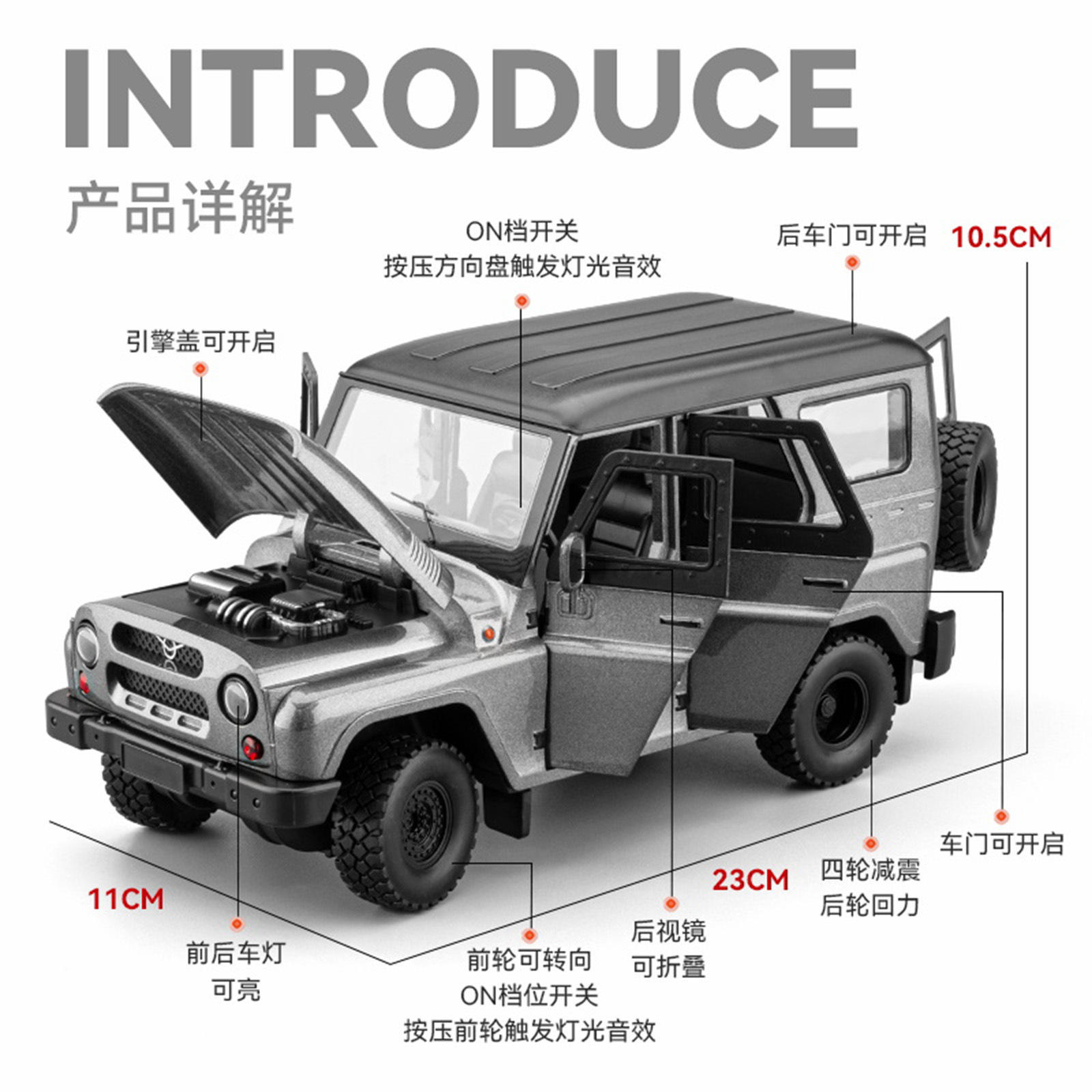 新款1:18俄罗斯瓦兹猎人合金越野车模型声光仿真汽车摆件儿童玩具