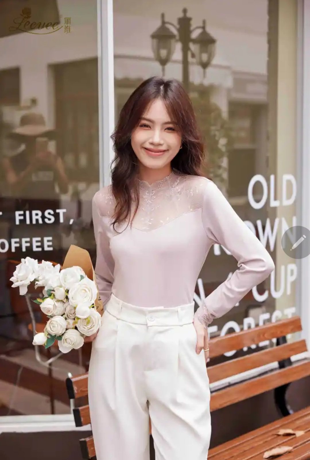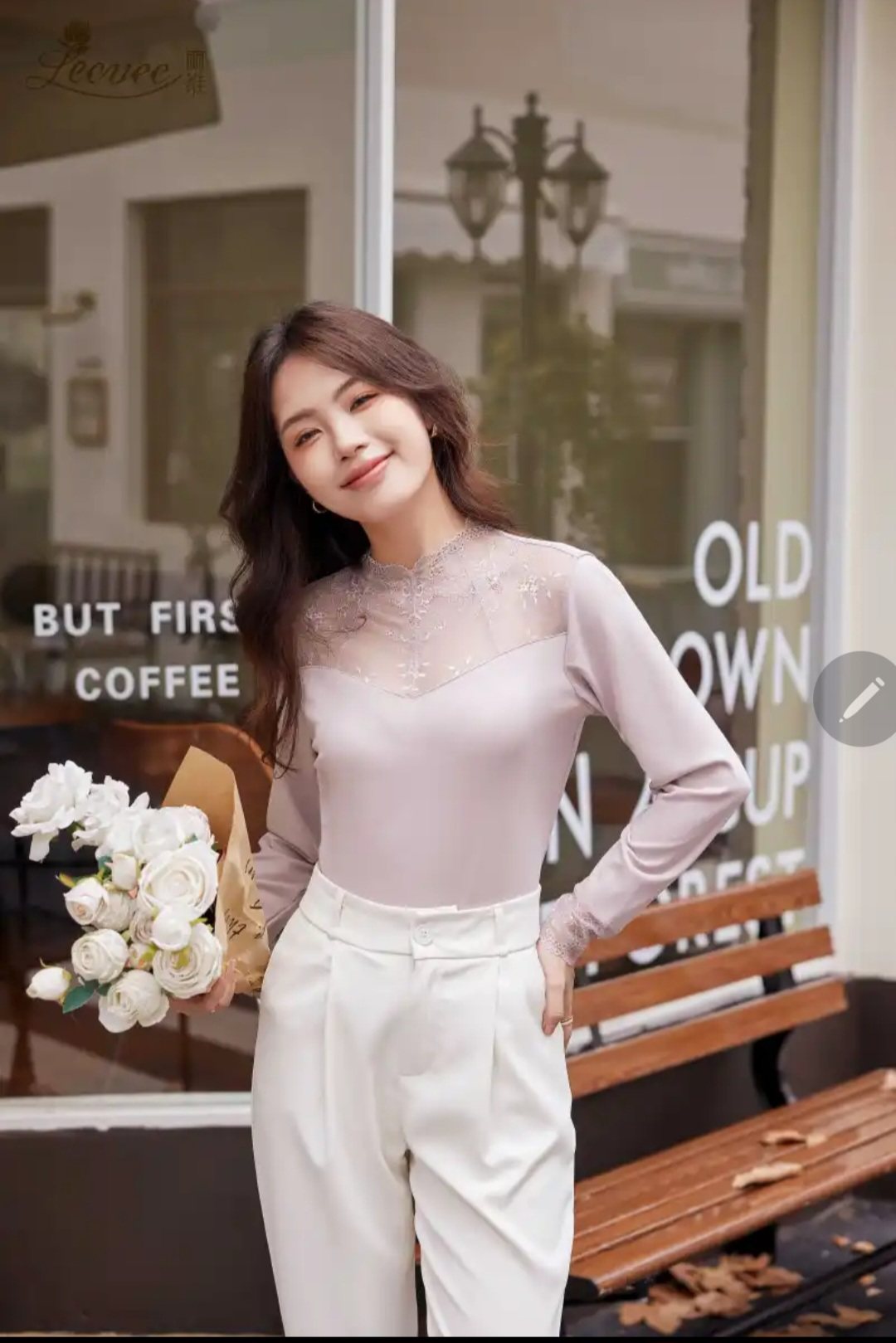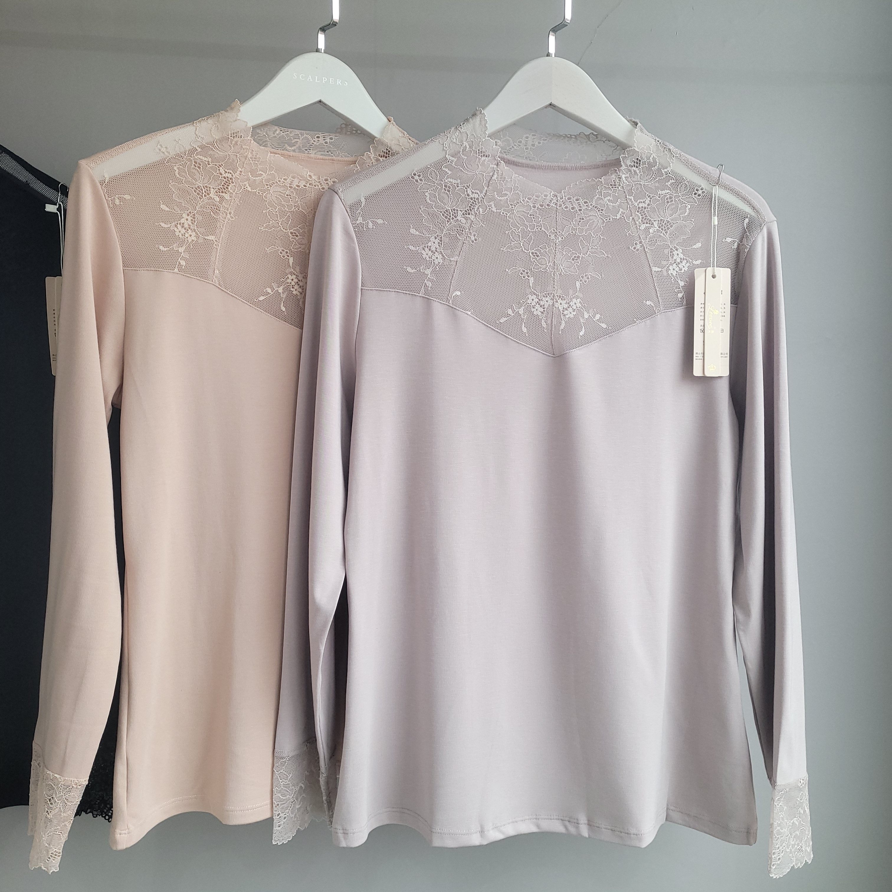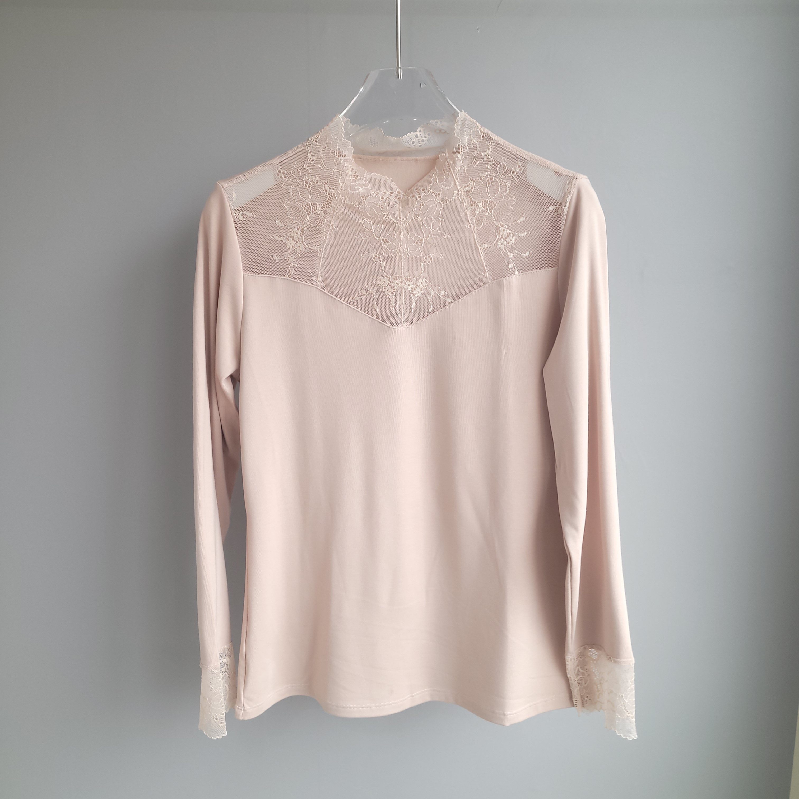 丽维X3095女士蕾丝网纱保暖上衣薄款小高领打底衫2024秋冬新款