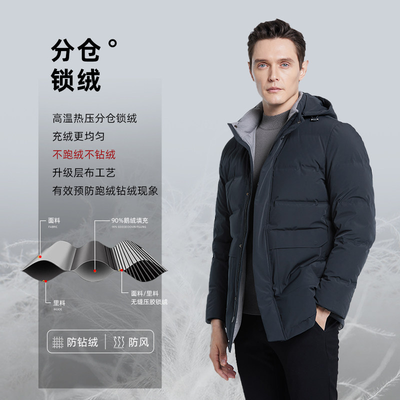 杉杉羽绒服男士商务休闲鹅绒服冬季2025新款加厚外套男连帽防寒服
