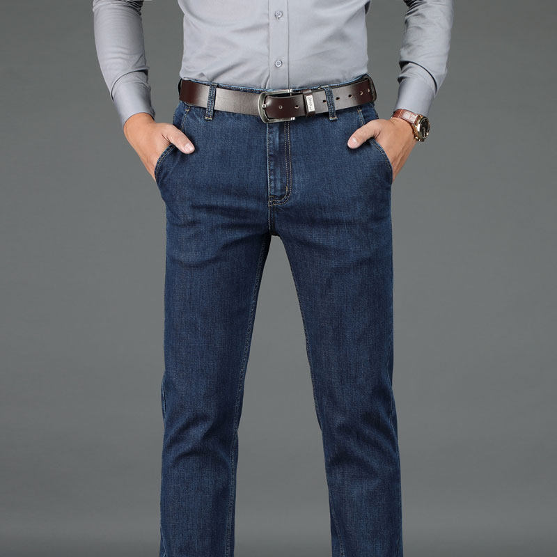 秋冬牛仔裤男中老年爸爸高腰深档直筒宽松弹力冬季裤子男加绒加厚