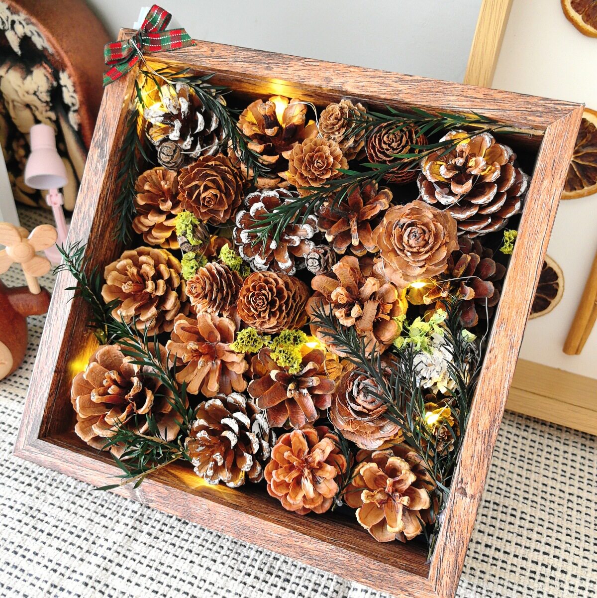 立体中空4cm相框摆件高级感松果实植物标本大尺寸挂墙装裱画空框