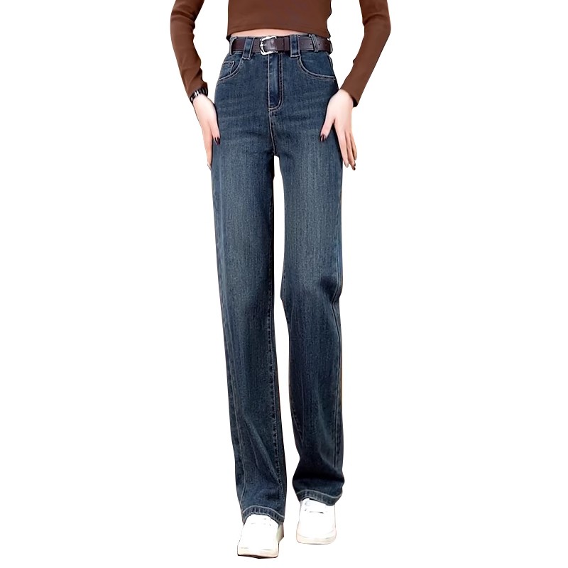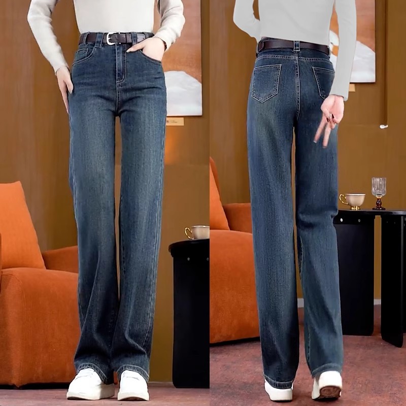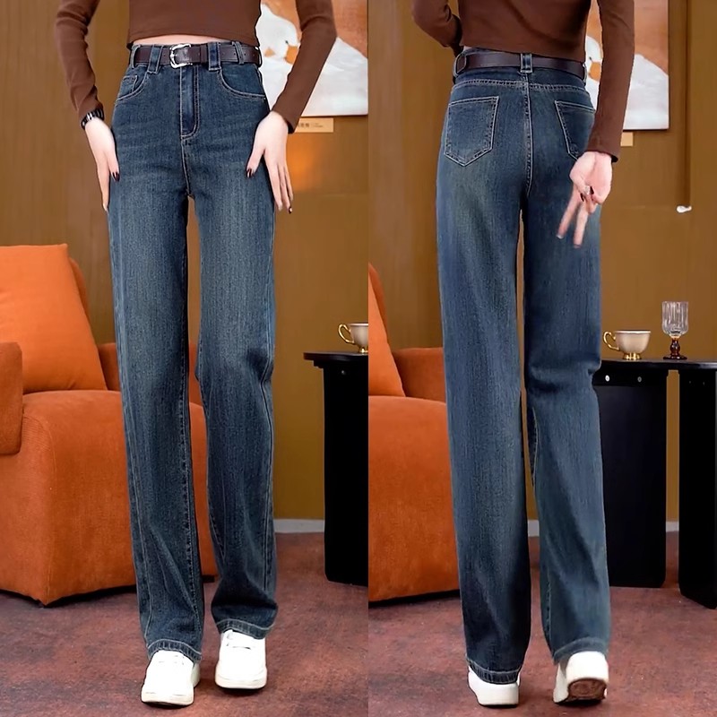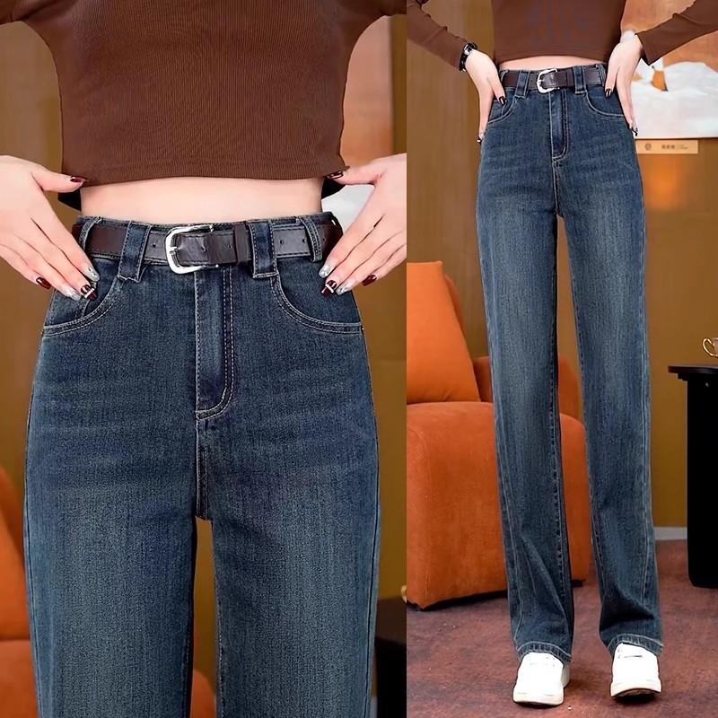高腰加绒牛仔裤宽松阔腿裤女裤子2025年新款秋冬季大码窄版直筒裤