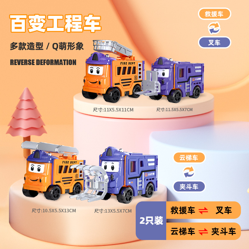 卡通儿童玩具车翻转变形反转车工程车惯性小汽车模型男孩礼物玩具
