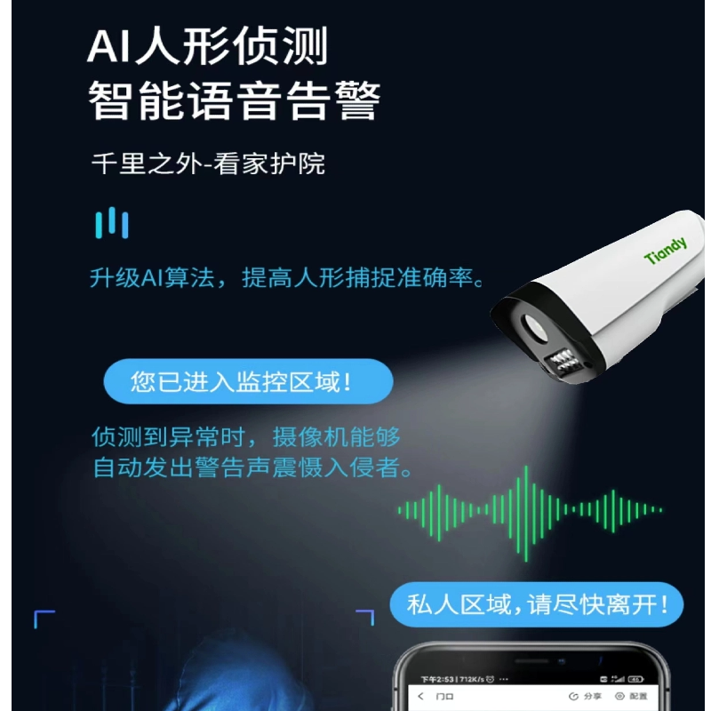 天地伟业摄像机400万警戒智能双向对讲人车侦测联动喊话声光报警