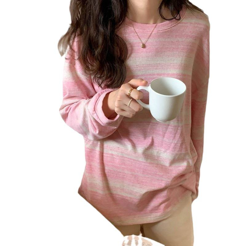 条纹圆领长袖T恤女装秋季2025新款设计感宽松学生上衣服女ins潮