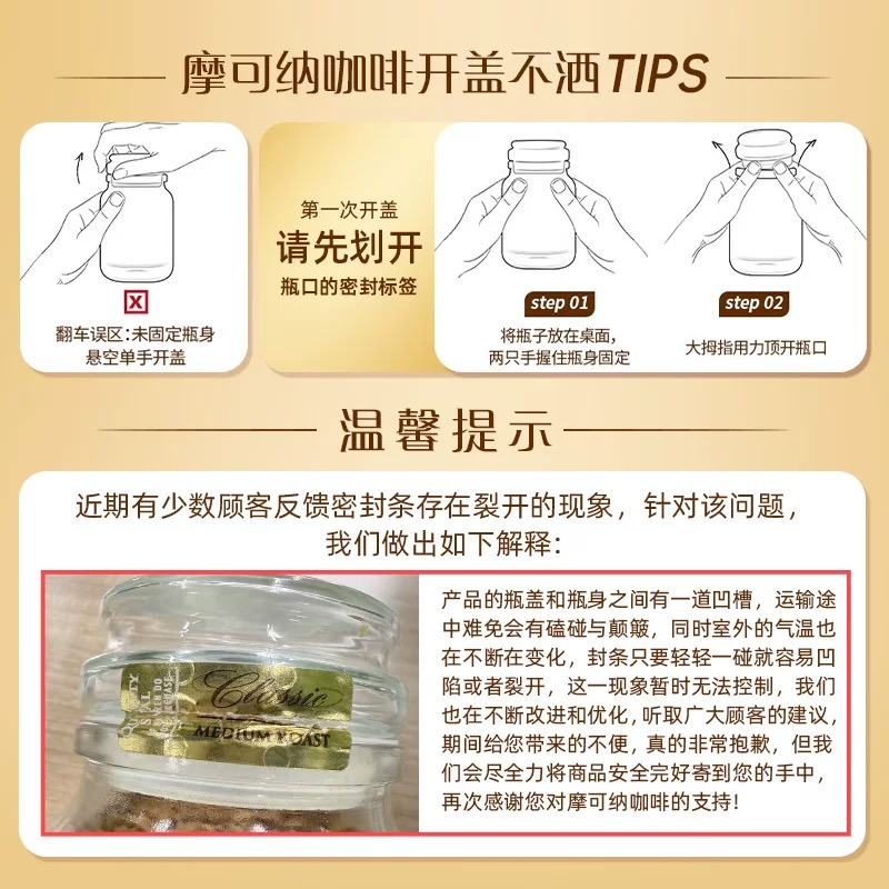 moccona摩可纳咖啡中深度烘培冻干速溶咖啡粉100g/200g美式黑咖啡