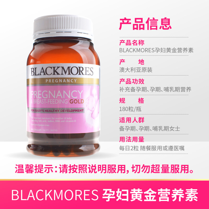 澳洲Blackmores孕妇黄金营养素叶酸DHA保护胎儿180粒