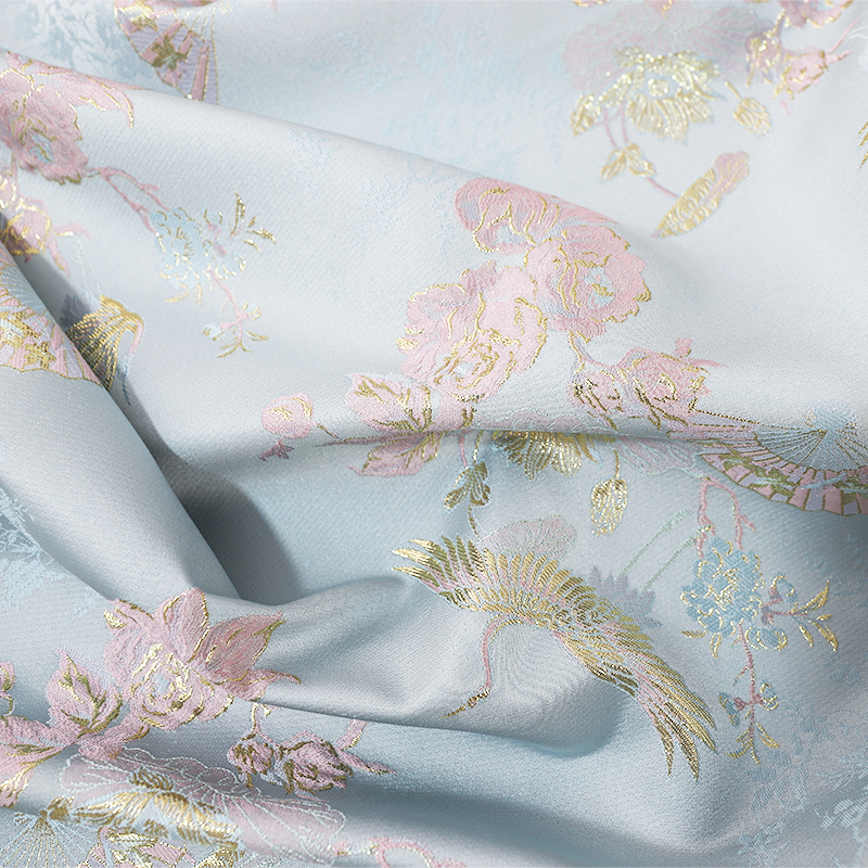 《FS077仙鹤羽扇》轻奢提花布连衣裙风衣女装色织布料服饰面料