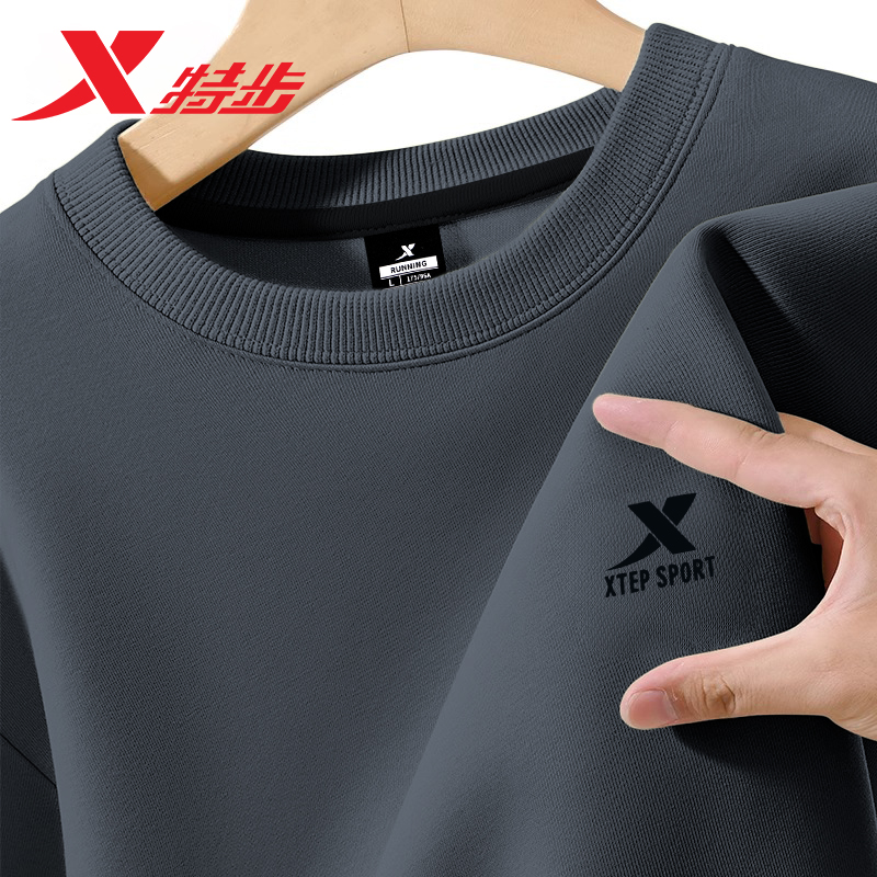特步卫衣男秋冬2025新款无帽圆领官方旗舰店纯色冬季运动长袖上衣