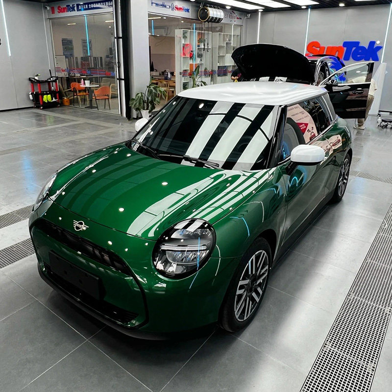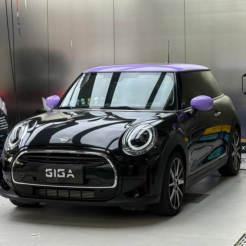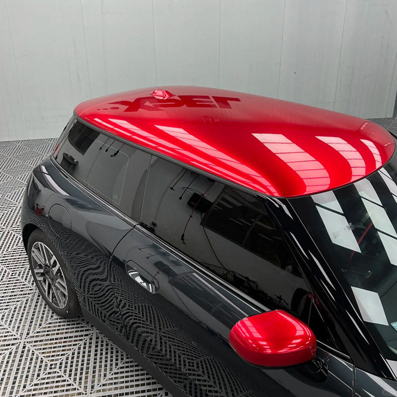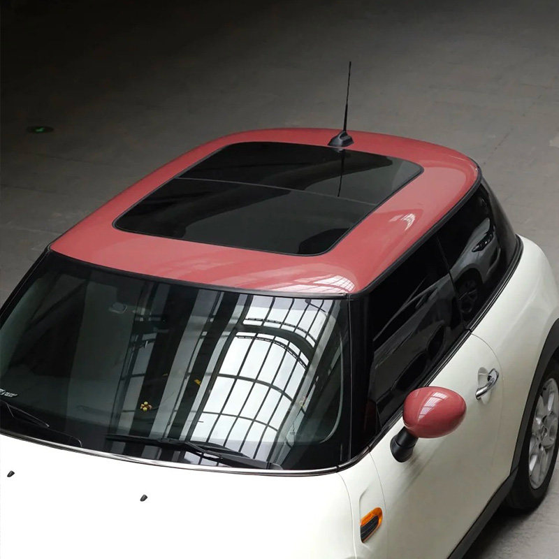 宝马mini汽车拉花贴膜汽车改色膜焦糖宗悬浮车顶膜红色车顶改色膜