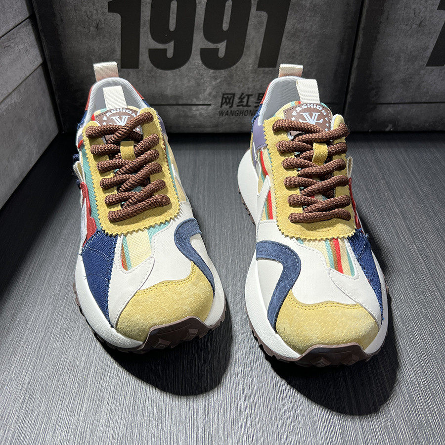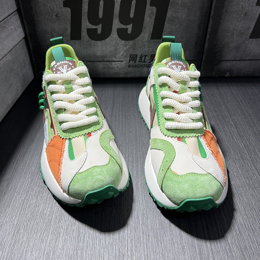 时尚百搭男鞋2025新款夏季透气厚底老爹休闲跑步旅游青少年运动鞋
